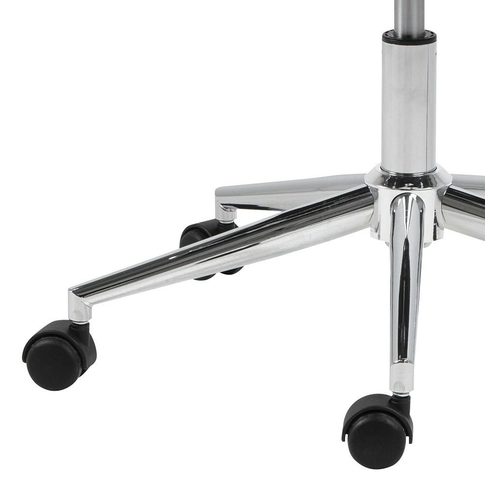Fotel biurowy Winslow to wygodny obrotowy fotel z podłokietnikami. Siedzisko oraz oparcie krzesła zostało obite miękką czarną skórą. Poziome regularne przeszycia na fotelu dodają mu nowoczesnego wyglądu. Podłokietniki fotela również zostały obite skórą. Chromowana podstawa fotela wyposażona została w pięć obrotowych kółek. Fotel posiada regulację wysokości. Fotel posiada opcję automatycznego blokowania się kółek. Opcja ta polega, iż w momencie, gdy na fotelu nikt nie siedzi, utrudnione jest przesunięcie fotela, natomiast w momencie, gdy na nim siedzimy kółeczka obracają się delikatnie i płynnie. Max. obciążenie: 120 kg Max. ilość sztuk w kartonie: 1 Wymiary kartonu: 68 cm x 59 cm x 48 cm Wysokość siedziska: 52 cm Szerokość siedziska: 44,5 cm Głębokość siedziska: 42 cm Wysokość podłokietników: 20 cm
