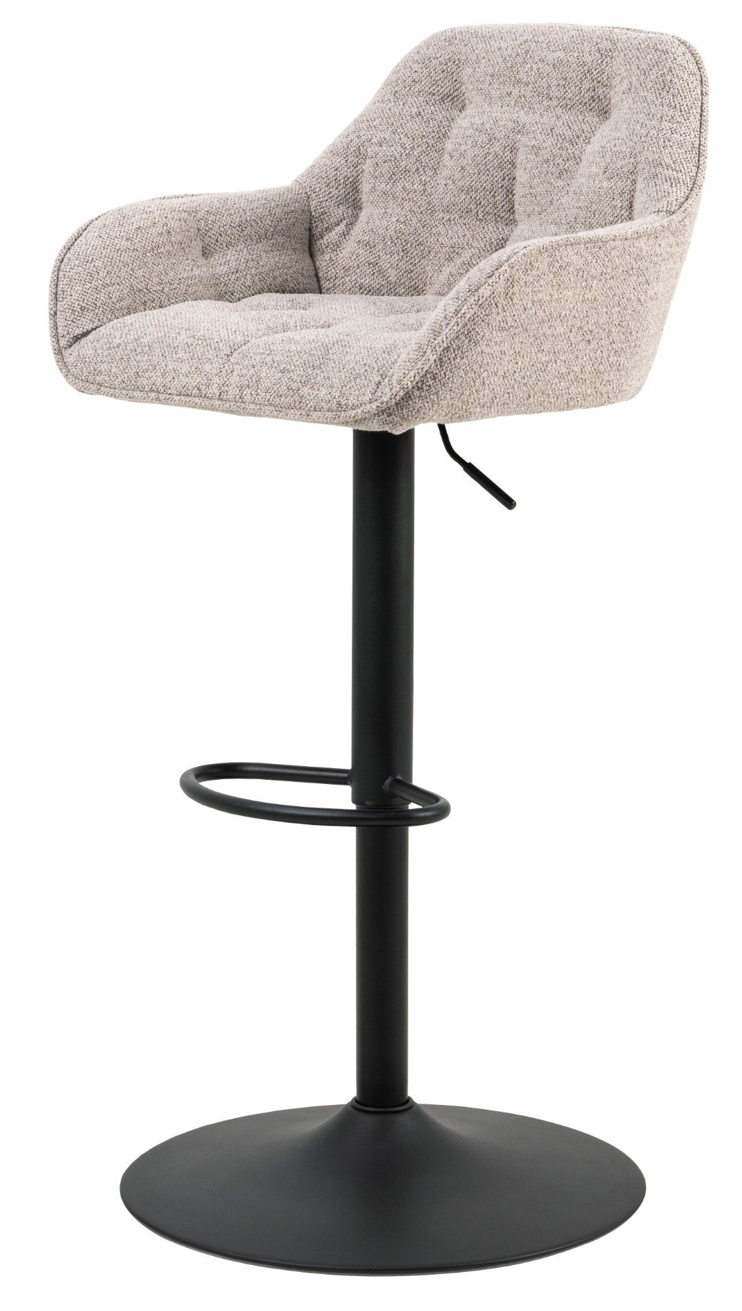 Krzesło barowe Brooke to kwintesencja stylu modern glamour. Modna tkanina w połączeniu z wytrzymałą metalową podstawą krzesła wpisze się w nowoczesny wystrój wnętrza. Stołek barowy komfort zawdzięcza miękkiej piance tapicerskiej, która gwarantuje miękkość oparcia oraz siedziska. Tkanina Monza fabric beige 60 o uniwersalnym beżowym kolorze sprawdzi się w nowoczesnej jadalni lub przy wyspie kuchennej.Wysokość oparcia 26 cmSzerokość siedzenia 37.5 cmGłębokość siedzenia 37.5 cmWysokość minimalna: 63cmWysokość maksymalna:84cmWymiary opakowania: 55x53x36 cmWaga: 8,5 kg