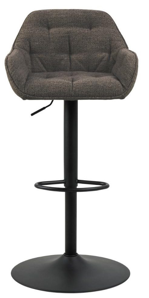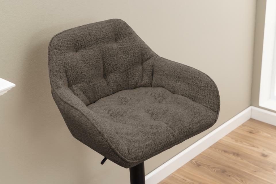 Krzesło barowe Brooke to kwintesencja stylu modern glamour. Modna tkanina w połączeniu z wytrzymałą metalową podstawą krzesła wpisze się w nowoczesny wystrój wnętrza. Stołek barowy komfort zawdzięcza miękkiej piance tapicerskiej, która gwarantuje miękkość oparcia oraz siedziska. Tkanina Monza taupe 40 o uniwersalnym brązowym kolorze sprawdzi się w nowoczesnej jadalni lub przy wyspie kuchennej. Wysokość oparcia 26 cm Szerokość siedzenia 37.5 cm Głębokość siedzenia 37.5 cm Wysokość minimalna: 63cm Wysokość maksymalna:84cm Wymiary opakowania: 55x53x36 cm Waga: 8,5 kg