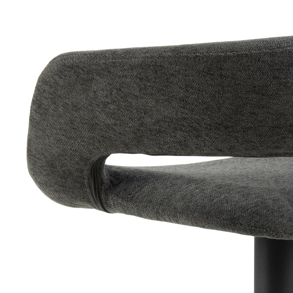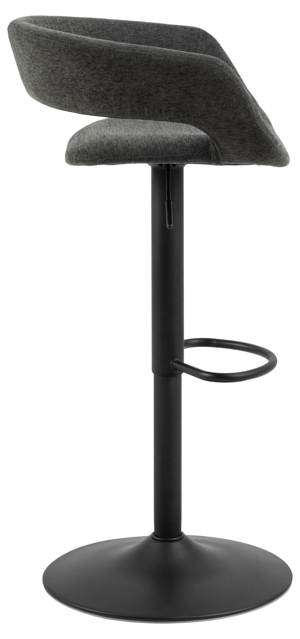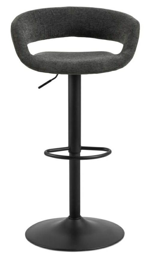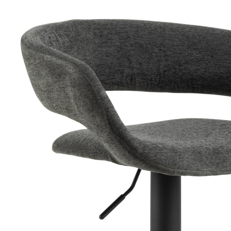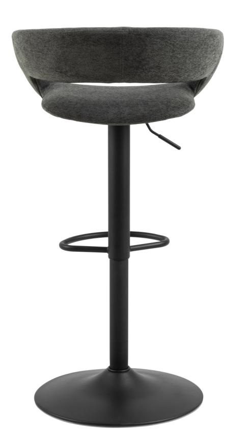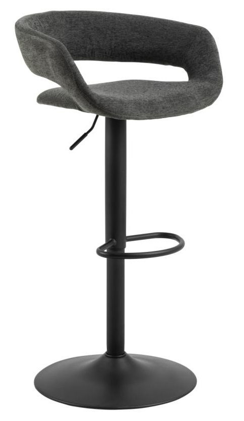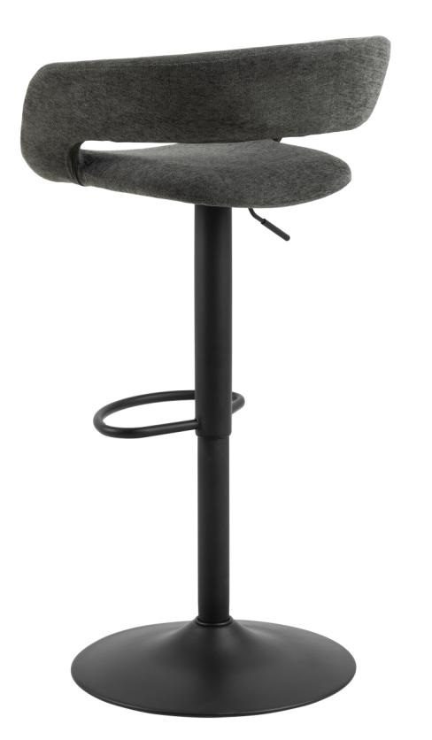 Hoker Grace to elegancki dodatek do wnętrz w stylu nowoczesnym bądź glamour. Hoker opiera się na metalowej, malowanej proszkowo nodze o okrągłym zakończeniu. Posiada także podpórkę na stopy. Siedzisko i niewysokie oparcie wypełnione są pianką poliuretanową pokrytą tkaniną Apia fabric dark grey 458. Cechą charakterystczną hokera Grace jest wolna przestrzeń pomiędzy siedziskiem a oparciem. Stołek ten będzie pasować perfekcyjnie do jadalni, baru bądź restauracji.Wysokośc oparcia 28cmSzerokość siedziska: 38cmGłębokość siedziska: 39cmWyskość siedziska (regulowana) od 59 do 80cm.Wymaga montażu. Ilość kartonów: 1 Wymiary kartonów: 57x55x44cm Waga kartonów: 8,4kg