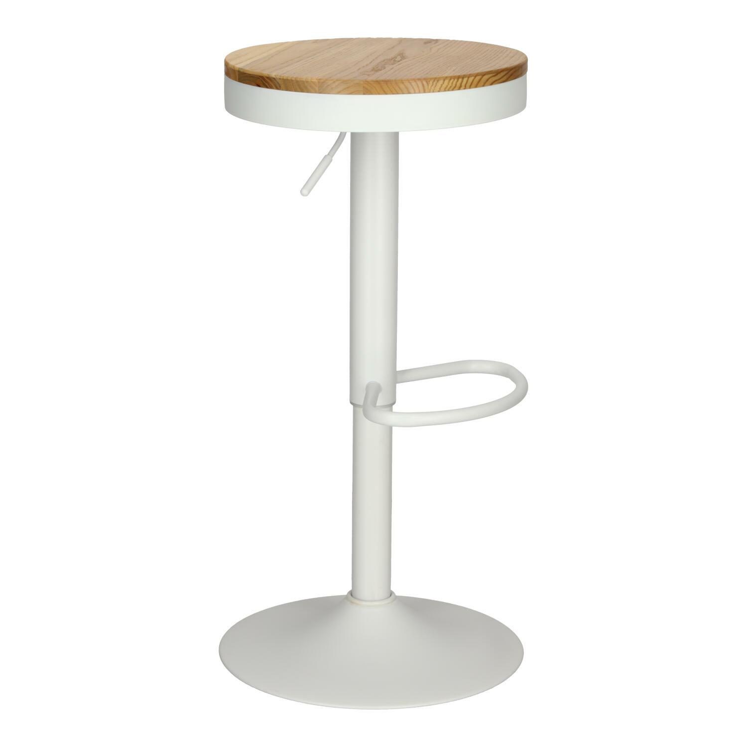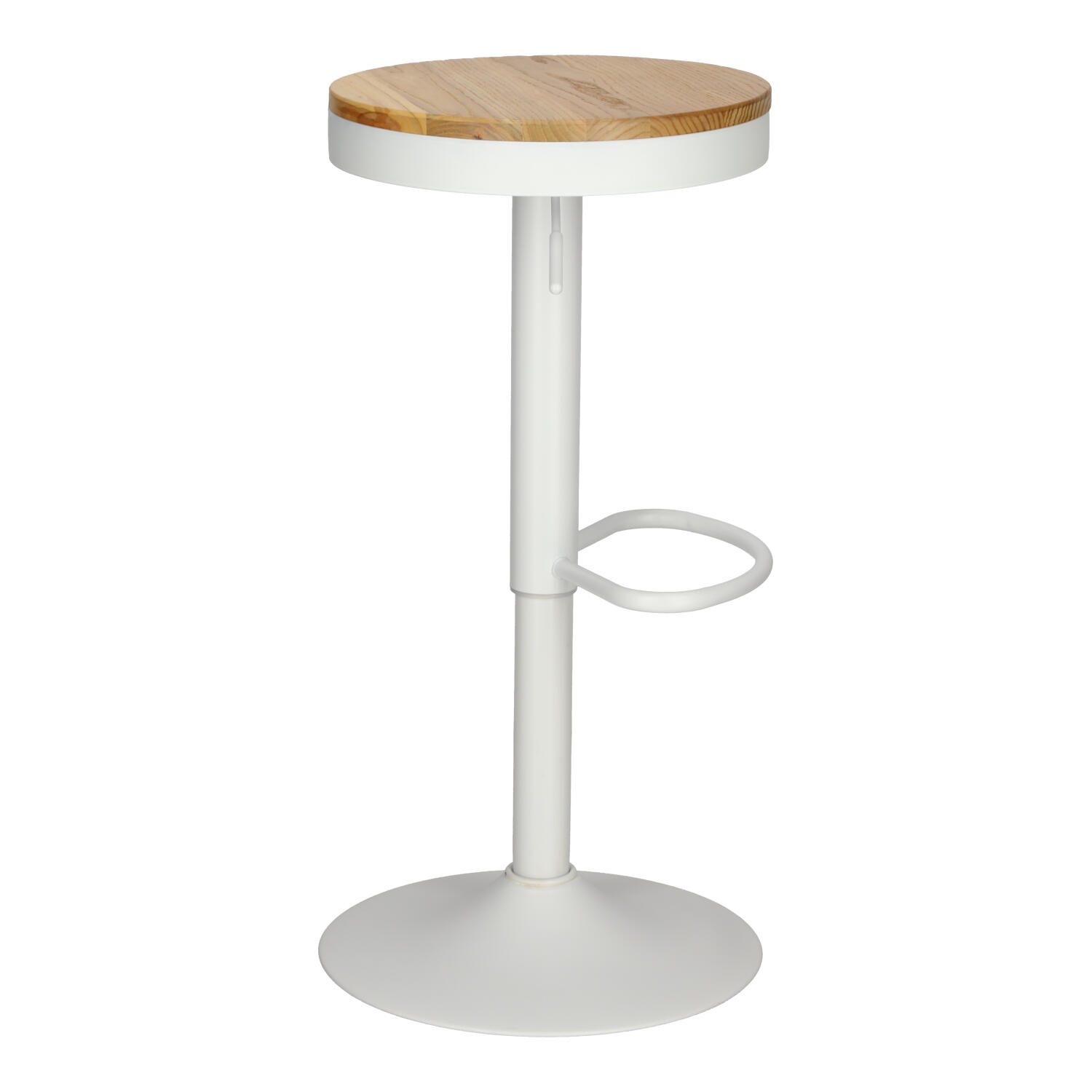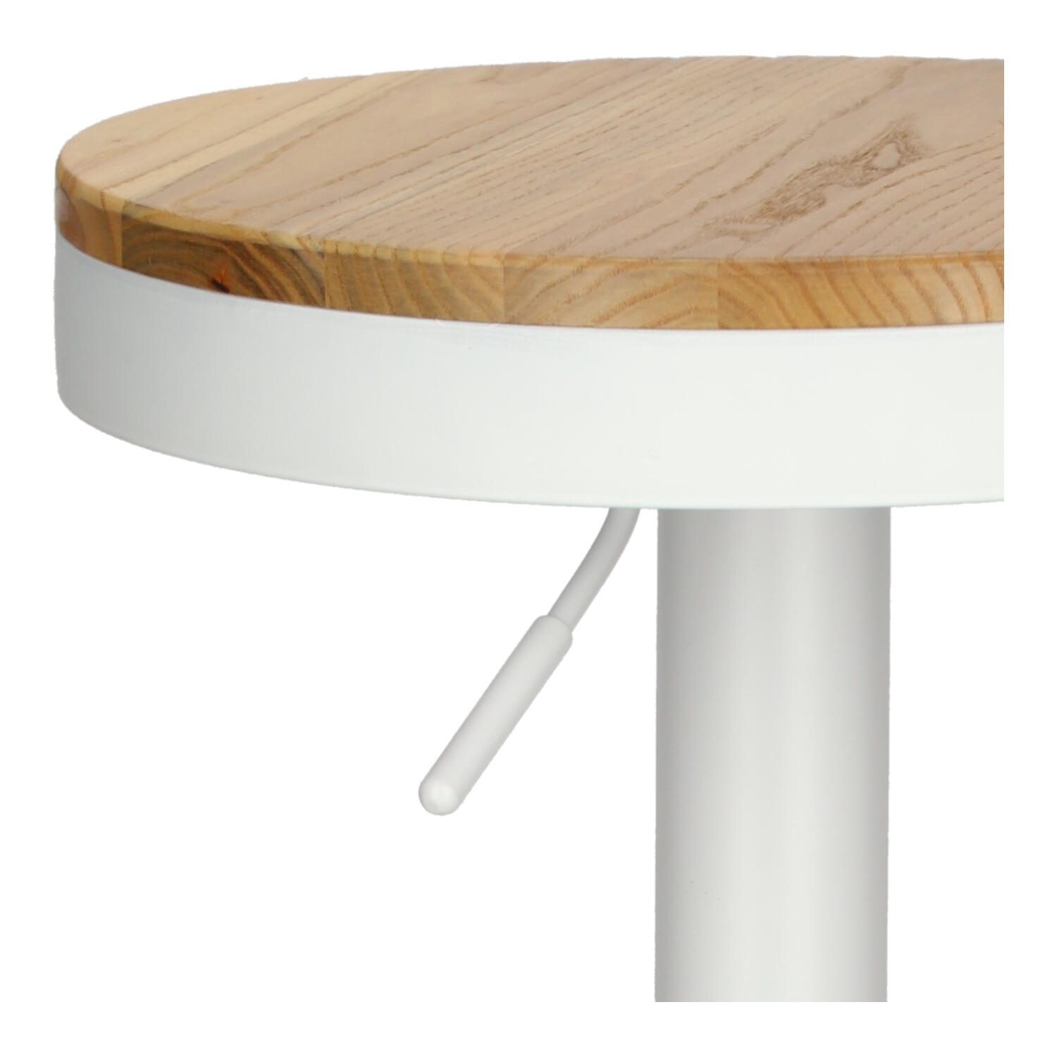Rustykalny hoker Lofter to połączenie okrągłego siedziska z naturalnego drewna wiązu oraz metalowej, matowej proszkowo podstawy. Hoker o regulowanej wysokości od 60 do 82 cm sprawdzi się zarówno przy niskiej wyspie kuchennej jak i wysokim barze. Hoker wyposażony został w metalowy podnóżek którego wysokośc uzależniona jest od wysoości ustawionej na hokerze. Jej przedział to od 20 do 42 cm. Regulacja wysokości odbywa się za pomocą rączki w kolorze pdostawy, którą unosimy i modyfikujemy według własnego uznania wysokość. Dzięki podnośnikowi gazowemu regulacja jest płynna i intuicyjna. Hoker ze względu na wykończenie jest odporny, a jego czyszczenie odbywa się tylko za pomoca wilgotnej szmatki z odrobiną mydła. Max. obciążenie hokera 130kg.Średnica siedziska: 36,5 cmWysokość hokera regulowana od 60 do 82 cmWysokość podnóżka regulowana od 20 do 42 cmGrubość siedziska: 6cmHoker wymaga łatwego montażu.Max. 2 szt w kartonie