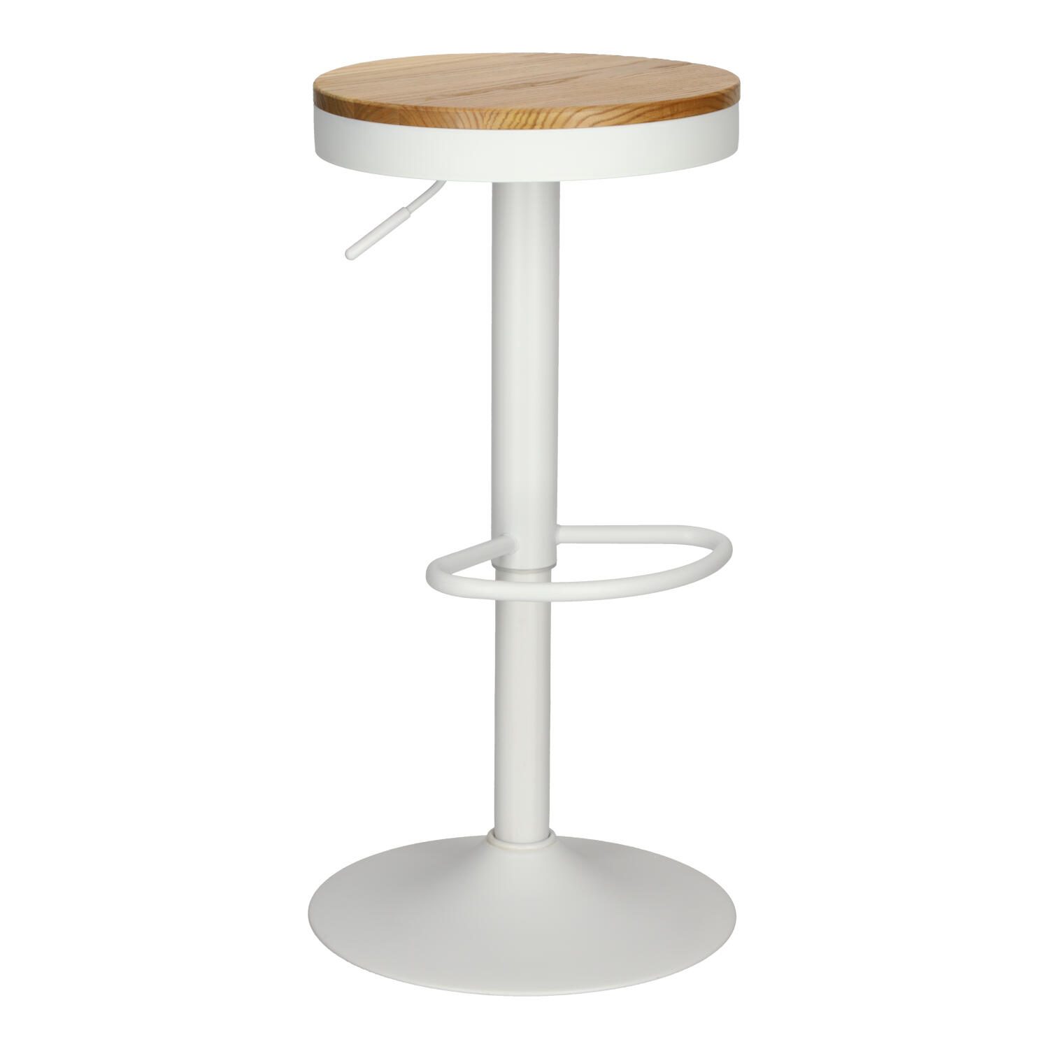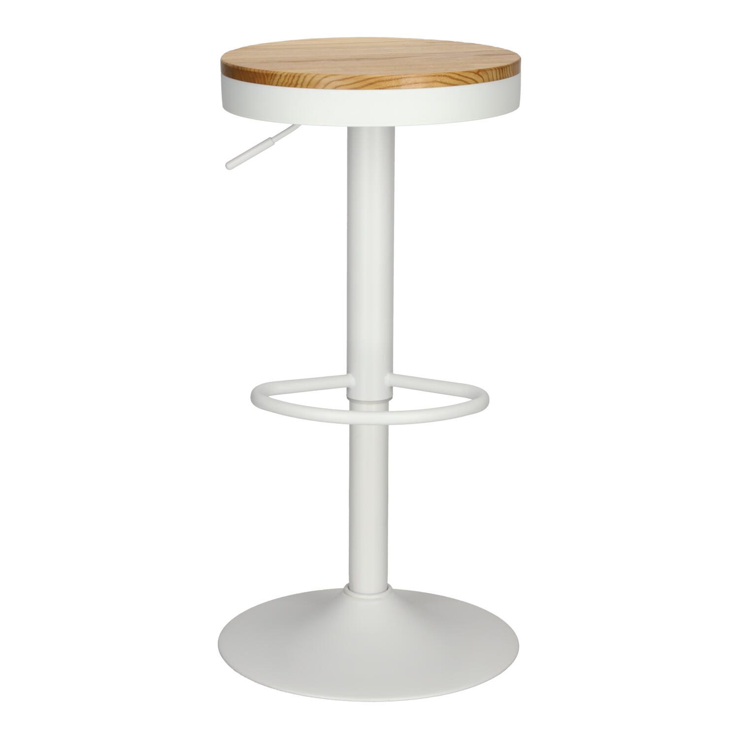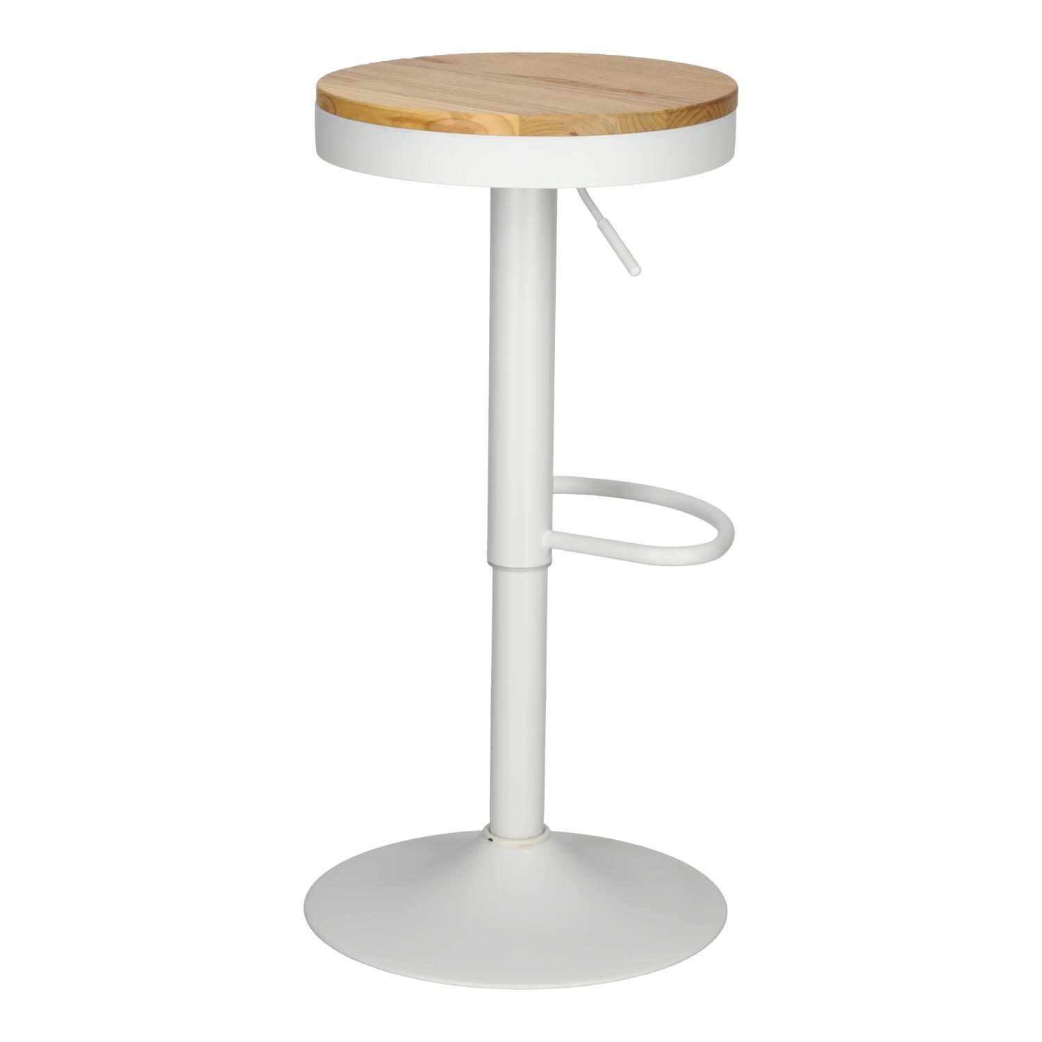 Rustykalny hoker Lofter to połączenie okrągłego siedziska z naturalnego drewna wiązu oraz metalowej, matowej proszkowo podstawy. Hoker o regulowanej wysokości od 60 do 82 cm sprawdzi się zarówno przy niskiej wyspie kuchennej jak i wysokim barze. Hoker wyposażony został w metalowy podnóżek którego wysokośc uzależniona jest od wysoości ustawionej na hokerze. Jej przedział to od 20 do 42 cm. Regulacja wysokości odbywa się za pomocą rączki w kolorze pdostawy, którą unosimy i modyfikujemy według własnego uznania wysokość. Dzięki podnośnikowi gazowemu regulacja jest płynna i intuicyjna. Hoker ze względu na wykończenie jest odporny, a jego czyszczenie odbywa się tylko za pomoca wilgotnej szmatki z odrobiną mydła. Max. obciążenie hokera 130kg.Średnica siedziska: 36,5 cmWysokość hokera regulowana od 60 do 82 cmWysokość podnóżka regulowana od 20 do 42 cmGrubość siedziska: 6cmHoker wymaga łatwego montażu.Max. 2 szt w kartonie