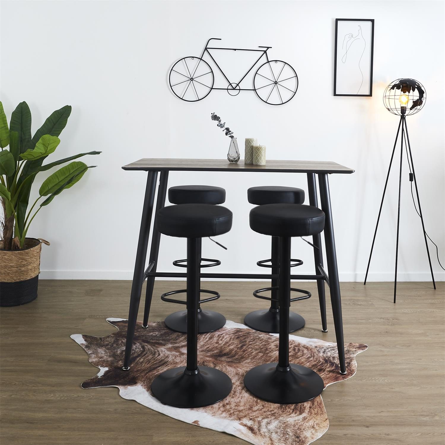 Regulowany stołek barowy Mumford to elegancki i funkcjonalny dodatek do Twojej kuchni, baru lub jadalni. Jego nowoczesny design i czarny kolor doskonale komponują się z różnorodnymi stylami wnętrz, od minimalistycznych po industrialne. Dzięki mechanizmowi regulacji wysokości, stołek można dostosować do różnych potrzeb, zapewniając komfort użytkowania. Regulacja wysokości 18cm Materiał ramy: Drewno – sklejka Materiał nóg: Metal – żelazo Materiał pianki: Pianka – poliuretan