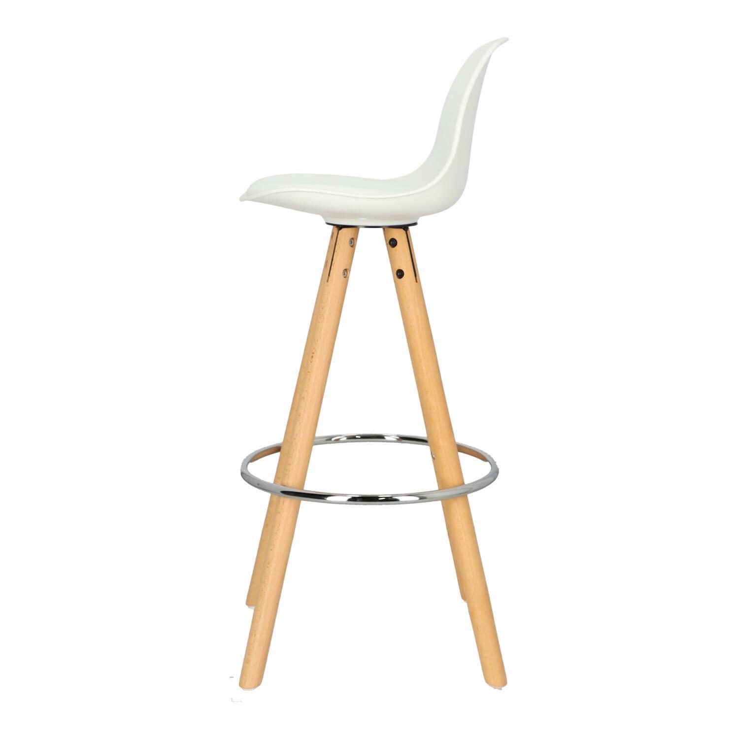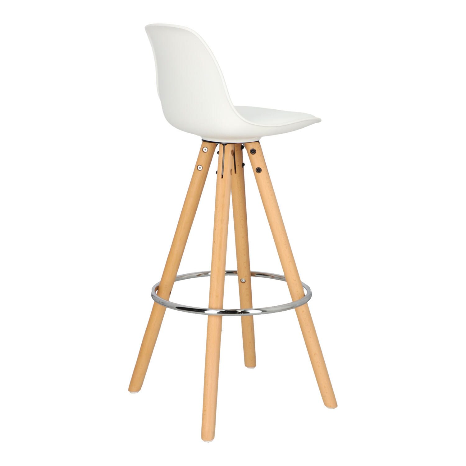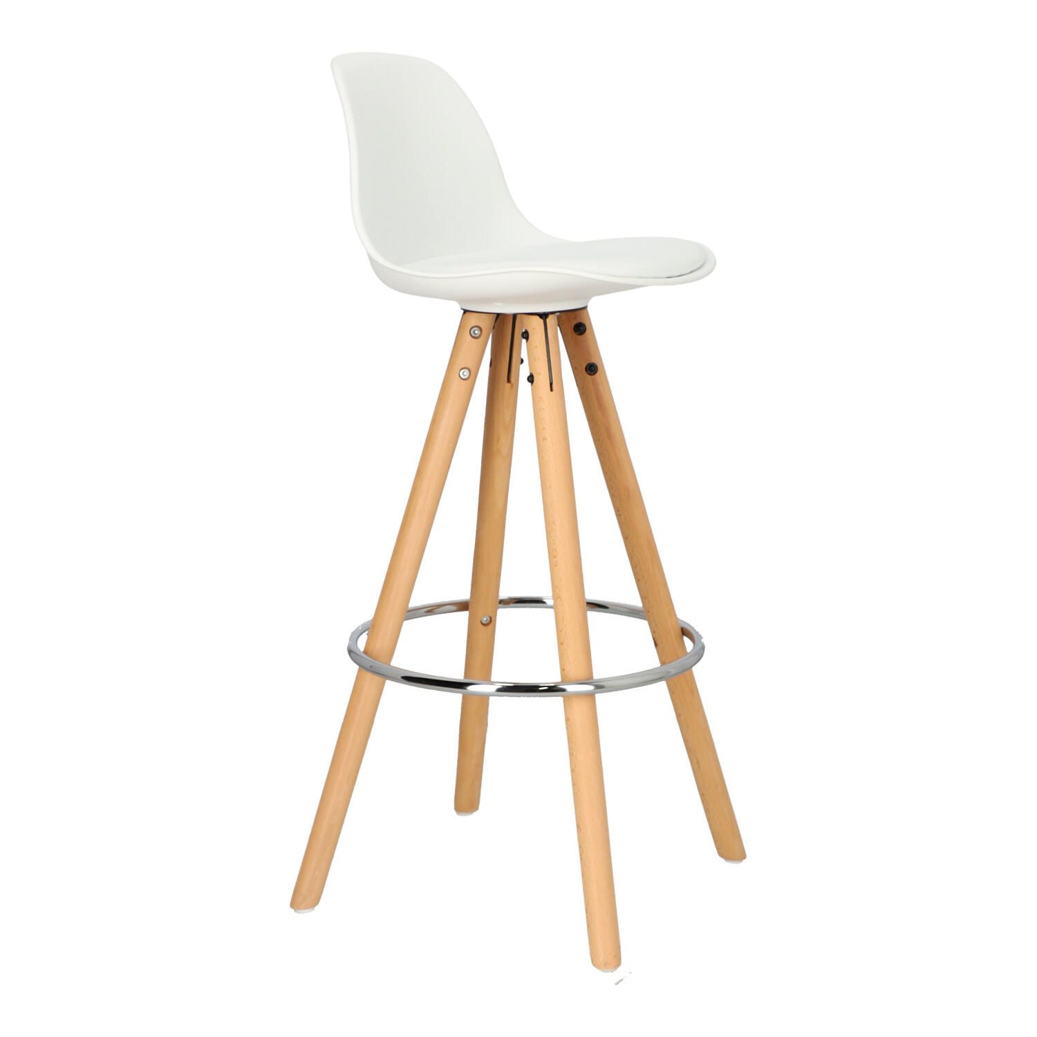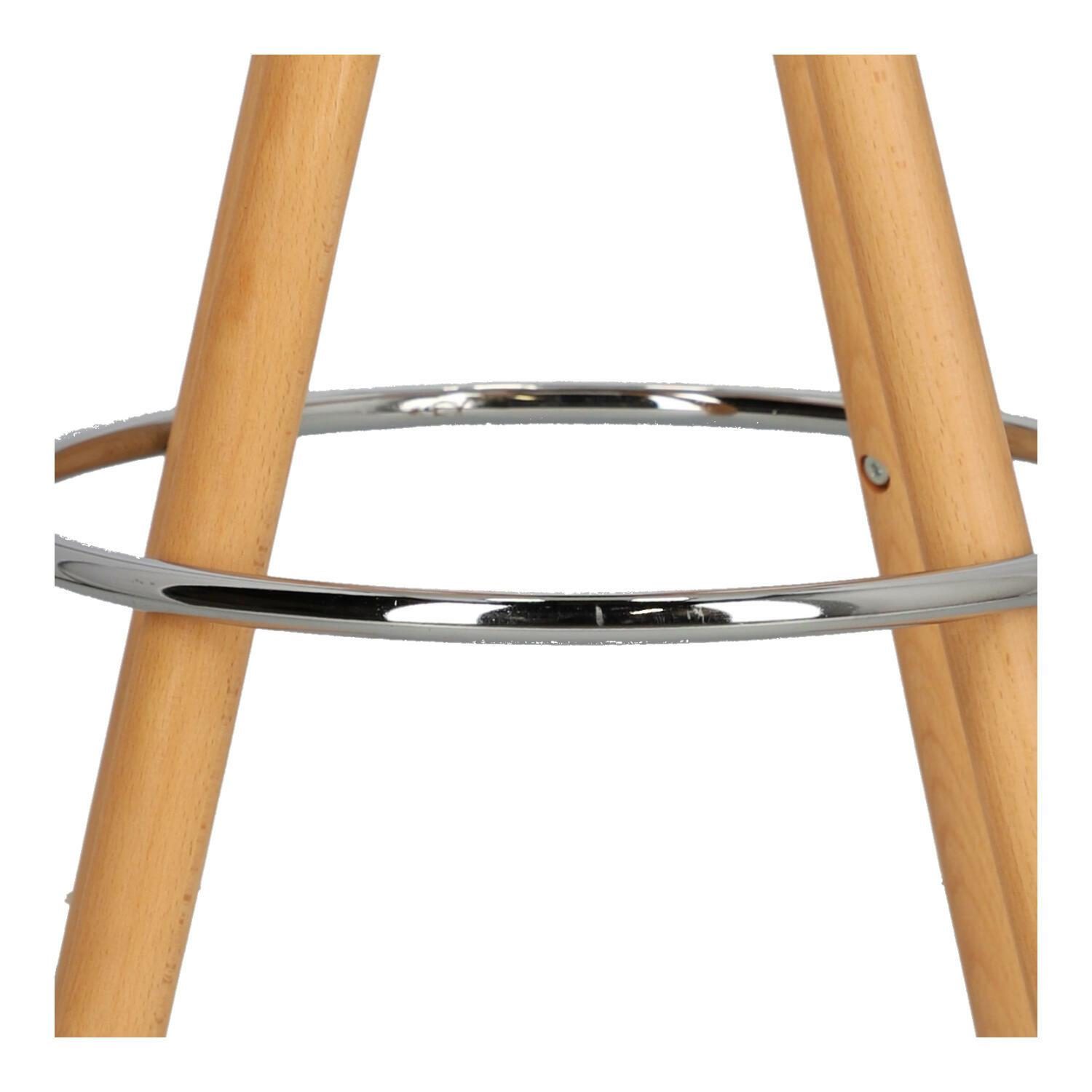 Hoker Nord o idealnie wyprofilowanym siedzisku to łatwy w czyszczeniu stołek barowy, który sprawdzi się jako mebel do wyspy kuchennej lub jako siedzisko przy barze. Podstawa stołka to drewniane bukowe nogi, które otacza metalowa, chromowana obręcz. Stabilne nogi łączą się z siedziskiem w jednym centralnym miejscu. Siedzisko wykonane z polipropyleniu dla wygody użytkowania wyposażone zostało w poduszkę z eko-skóry. Poduszka przyczepina został na stałe. Materiał siedziska: Polipropylen+ poduszka ze skóry ekologicznej Materiał nóg: lite drewno bukowe Szerokość siedziska: 38cm Waga: 5kg Wym