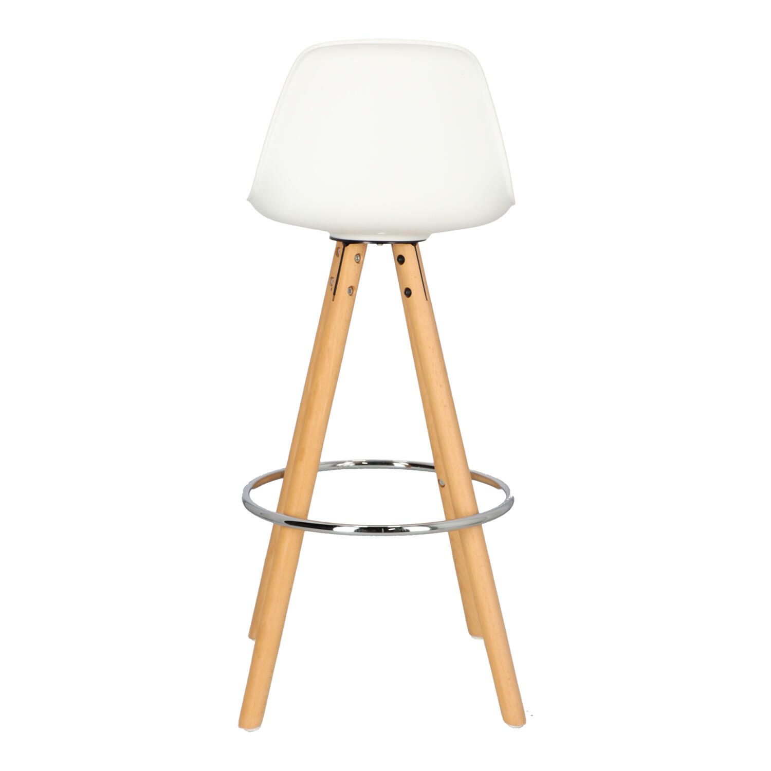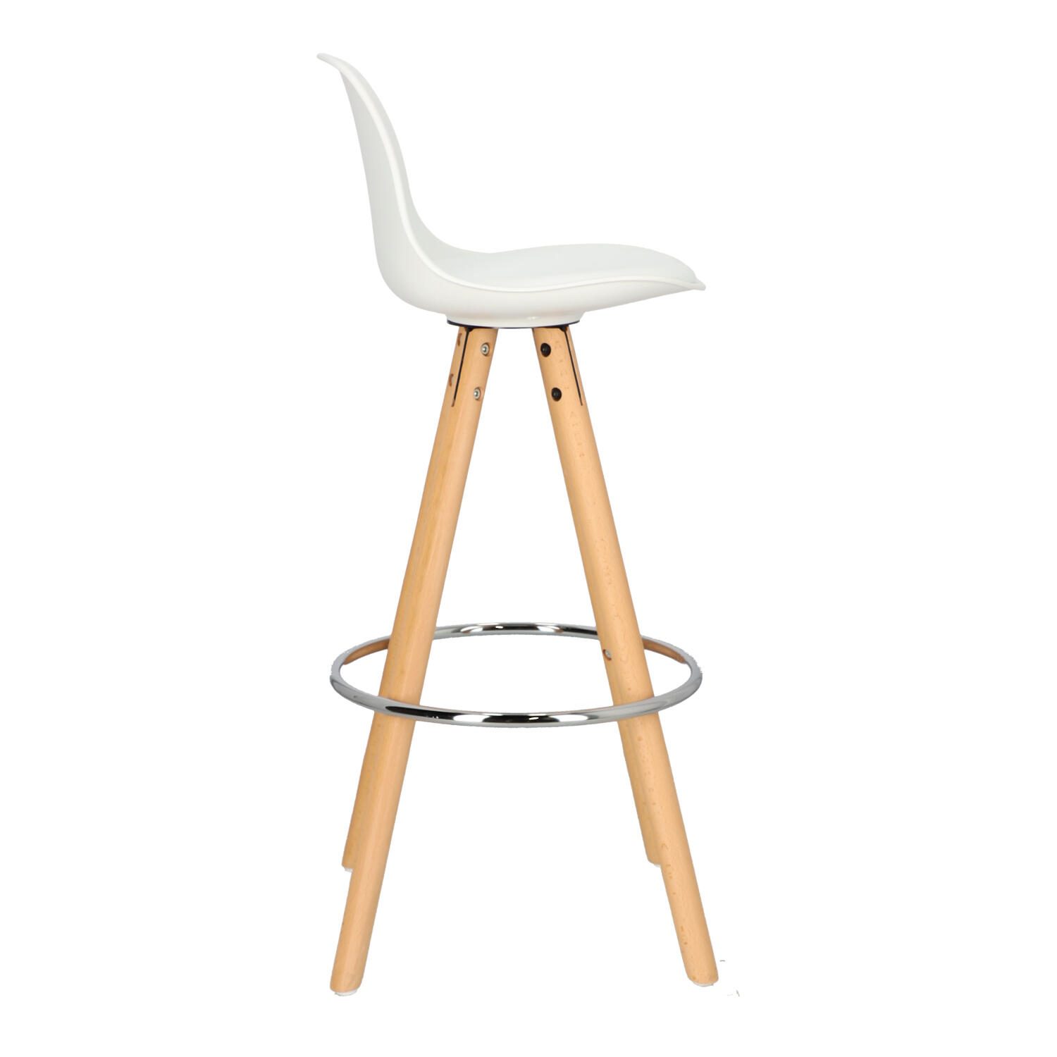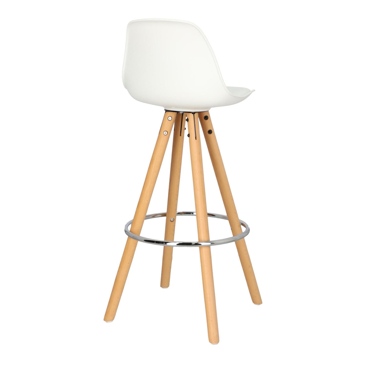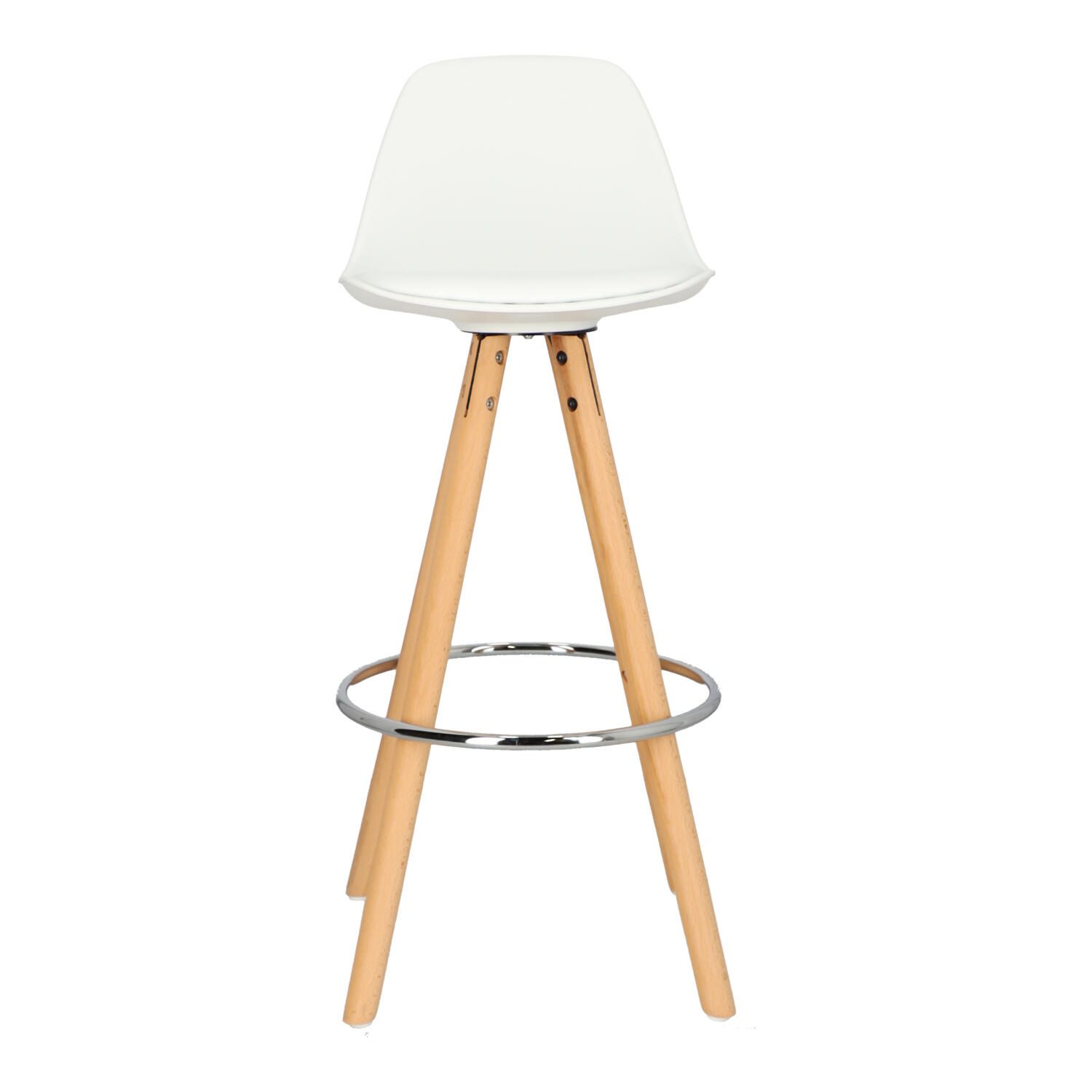 Hoker Nord o idealnie wyprofilowanym siedzisku to łatwy w czyszczeniu stołek barowy, który sprawdzi się jako mebel do wyspy kuchennej lub jako siedzisko przy barze. Podstawa stołka to drewniane bukowe nogi, które otacza metalowa, chromowana obręcz. Stabilne nogi łączą się z siedziskiem w jednym centralnym miejscu. Siedzisko wykonane z polipropyleniu dla wygody użytkowania wyposażone zostało w poduszkę z eko-skóry. Poduszka przyczepina został na stałe. Materiał siedziska: Polipropylen+ poduszka ze skóry ekologicznej Materiał nóg: lite drewno bukowe Szerokość siedziska: 38cm Waga: 5kg Wym