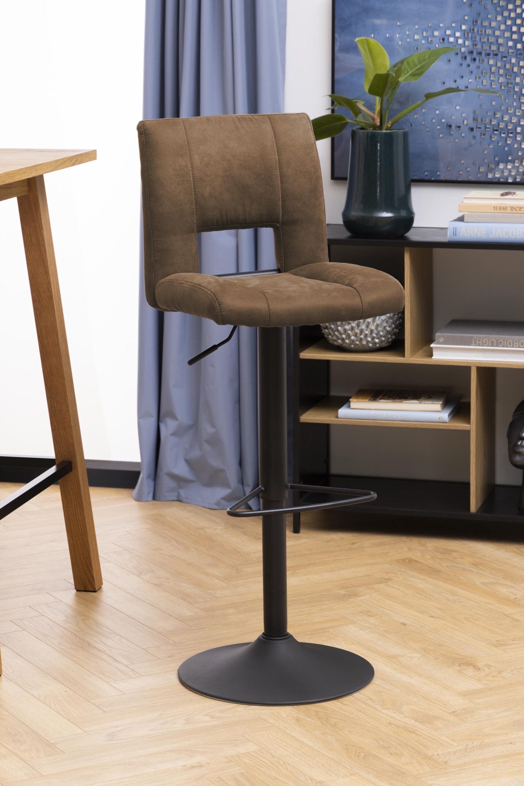 Hoker Sylvia to mebel do nowoczesnego baru lub jadalni. Siedzisko z pianki poliuretanowej pokryte jest tapicerką z tkaniny Preston fabric light brown 22. Podstawę stanowi długa, smukła noga w kolorze czarnym w wykończeniu matowym. Hoker poisada wysokie, wygodne oparcie oraz dodatkowe podparcie dla nóg. Stołek posiada regulację wysokości. Ilość kartonów: 1 Wymiary kartonów: 60x44x44cm Waga kartonów: 10,5kg