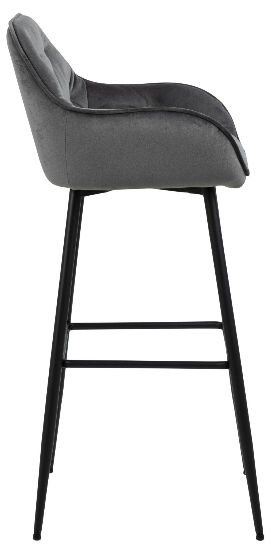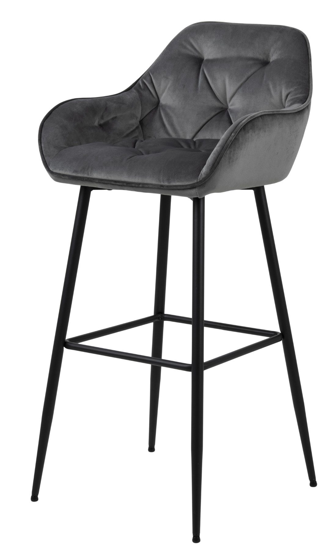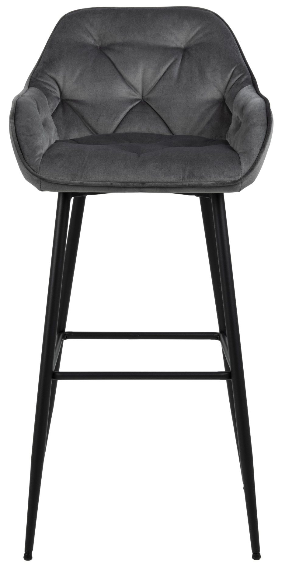 Krzesło barowe Brooke to kwintesencja stylu modern glamour. Modna welwetowa tkanina w połączeniu z wytrzymałą metalową podstawą krzesła wpisze się w nowoczesny wystrój wnętrza. Stołek barowy komfort zawdzięcza miękkiej piance tapicerskiej, która gwarantuje miękkość oparcia oraz siedziska. Welurowa tkanina VIC fabric dark grey 28 o nietypowym koralowym kolorze sprawdzi się w nowoczesnej jadalni lub przy wyspie kuchennej.Wysokość oparcia 26 cmSzerokość siedzenia 37.5 cmGłębokość siedzenia 37.5 cmWymiary opakowania: 67x42x82 cmWaga: 8 kg