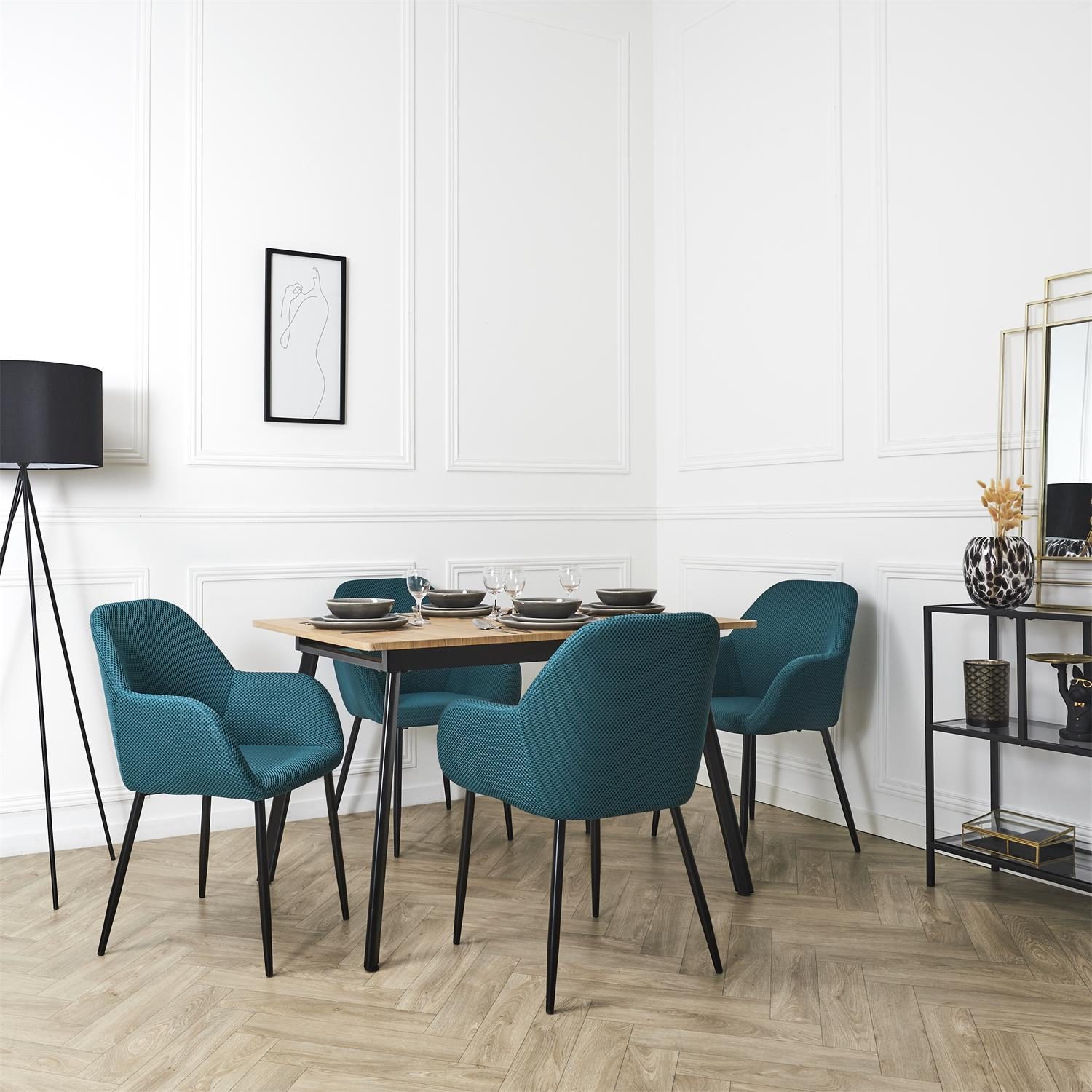 Krzesło Lavia w turkusowym odcieniu to doskonały wybór dla tych, którzy cenią sobie połączenie nowoczesnego designu z funkcjonalnością. Wygodne, wyprofilowane siedzisko oraz solidna metalowa podstawa zapewniają komfort podczas posiłków, a efekt trójwymiarowej tkaniny nadaje mu wyjątkowego charakteru. Idealnie sprawdzi się zarówno w jadalni, jak i w kuchni, dzięki swojej wysokiej przepuszczalności powietrza oraz minimalnemu pochłanianiu wilgoci.