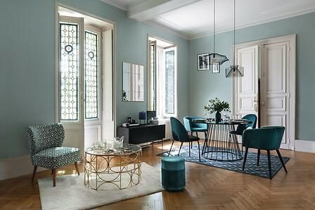 Zaraz po zajęciu miejsca na krześle Marlo, poczujesz, jak komfort i styl łączą się w jedną całość. Podłokietniki zapewniają wsparcie, a aksamitna tapicerka w intensywnym niebieskim kolorze dodaje wyjątkowego charakteru. Czyż nie marzysz o chwili relaksu w takim miejscu? Gęstość tkaniny tapicerki wynosząca 280 g/m3 sprawia, że to krzesło jest nie tylko estetyczne, ale i niezwykle wygodne.