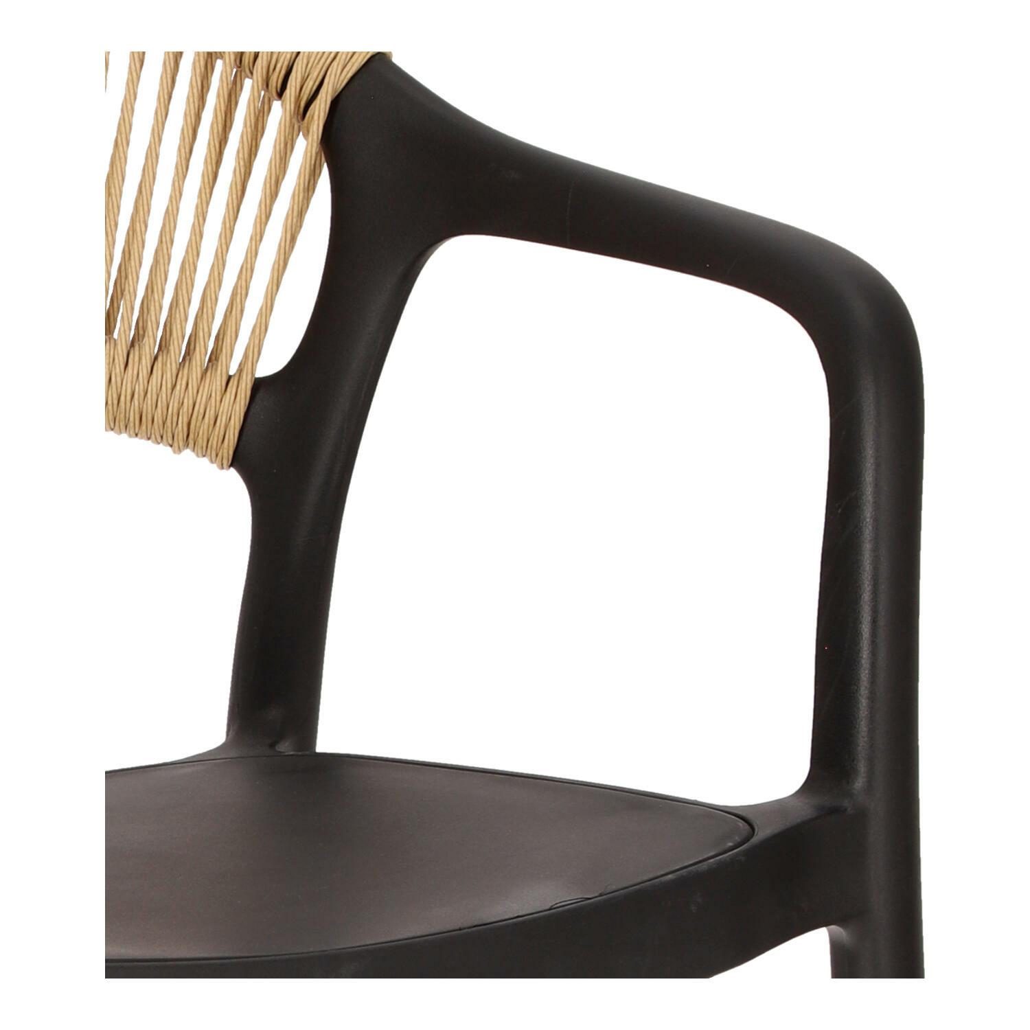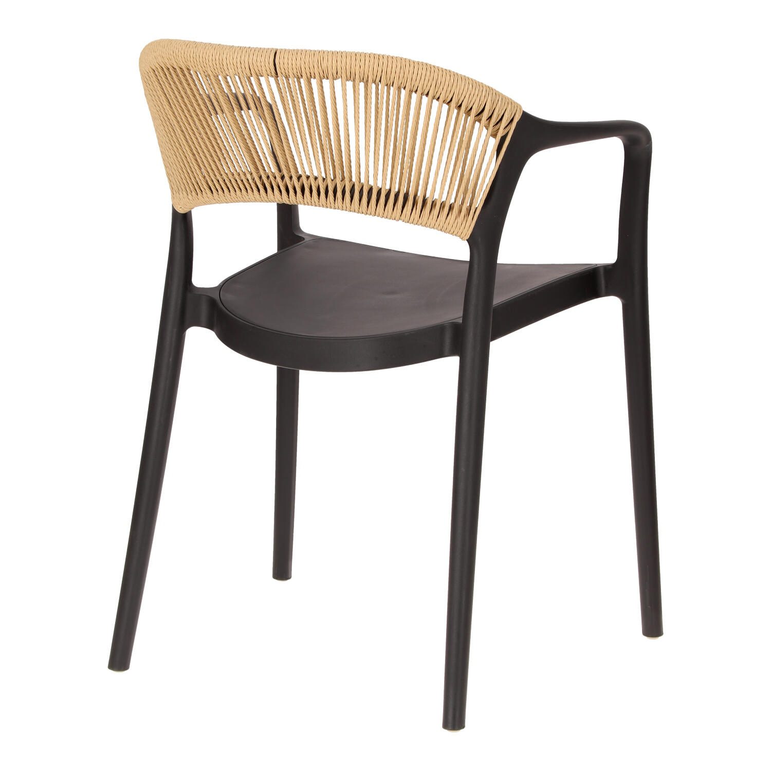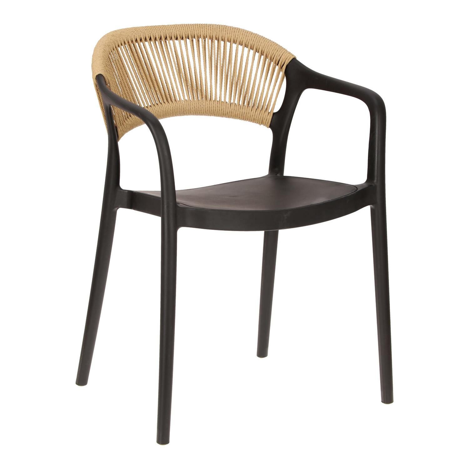 Krzesło Osma to połączenie wytrzymałego na promienie UV polipropylenu z plecionką ze sznura z tworzywa sztucznego (poliestru). Krzesło o wygodnym, lekko zaoblonym oparciu wyposażone zostało również w podłokietniki. Intrygujące oparcie jest nie tylko efektowne, ale również wygodne. Miękkie sznurki układają się pod kształt pleców. Max. obciążenie 120kg. Krzesło nie wymaga montażu. Krzesło sztapluje się. Maksymalne stosy 6szt Krzesło nadaje się do użytku na zewnątrz.Grubość nóg: 2,5cmWysokosc podłokietnikó 68cmGłębokość siedziska 42,5cmSzerokośc siedziska 42cmWaga krzesła 4,5kg
