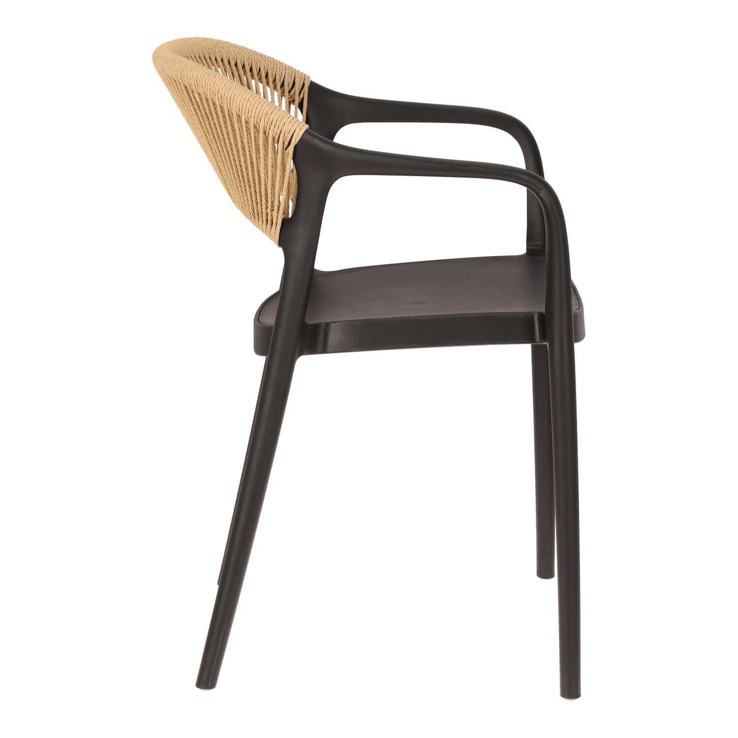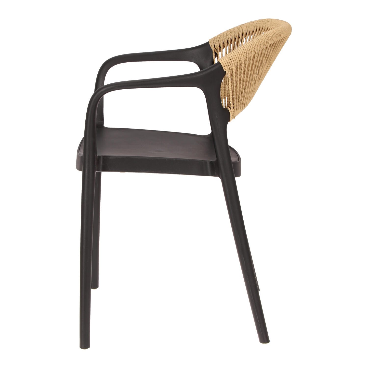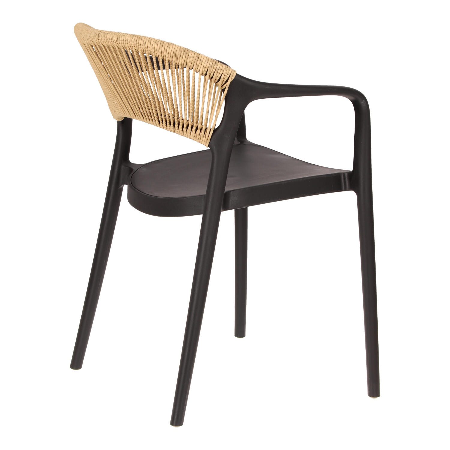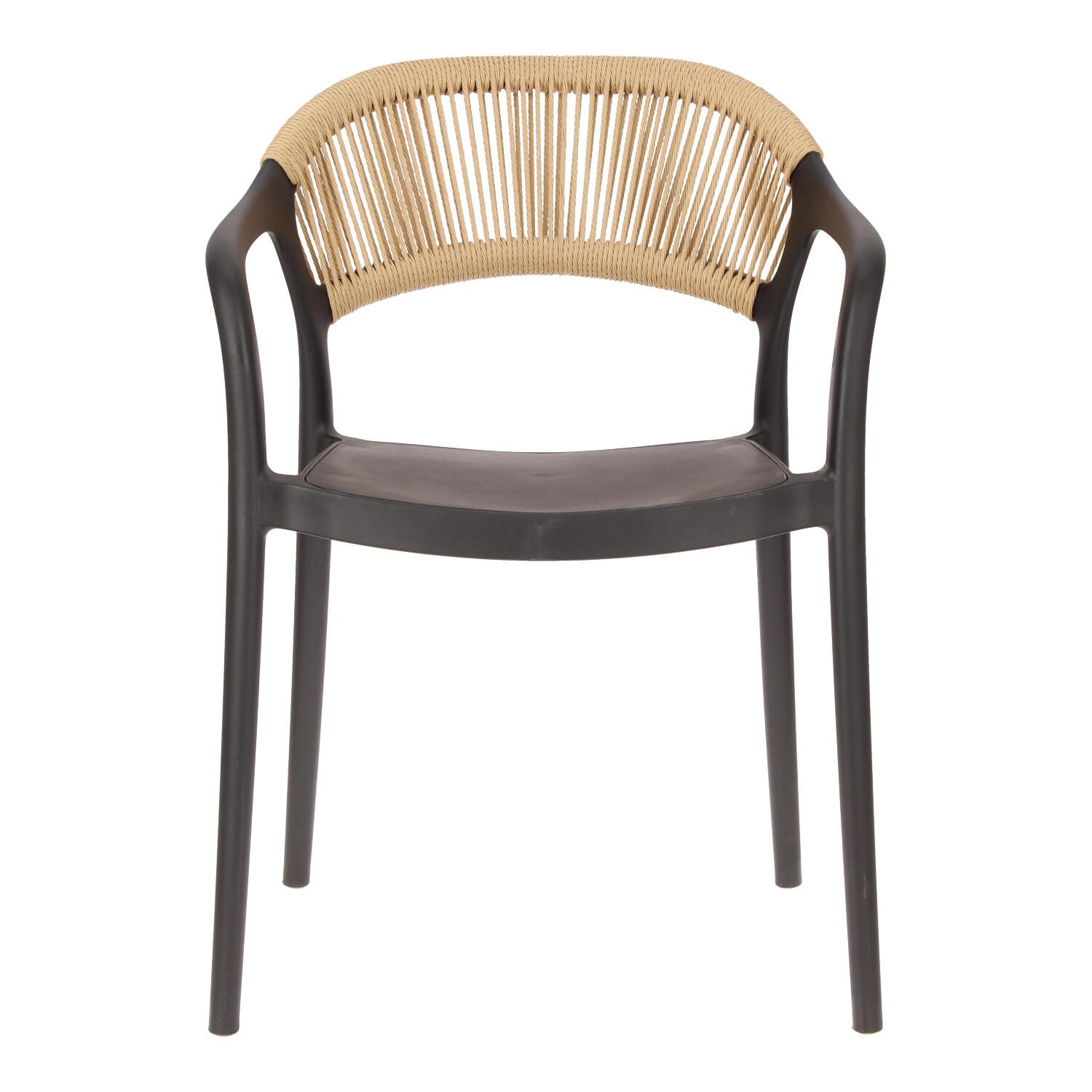 Krzesło Osma to połączenie wytrzymałego na promienie UV polipropylenu z plecionką ze sznura z tworzywa sztucznego (poliestru). Krzesło o wygodnym, lekko zaoblonym oparciu wyposażone zostało również w podłokietniki. Intrygujące oparcie jest nie tylko efektowne, ale również wygodne. Miękkie sznurki układają się pod kształt pleców. Max. obciążenie 120kg. Krzesło nie wymaga montażu. Krzesło sztapluje się. Maksymalne stosy 6szt Krzesło nadaje się do użytku na zewnątrz.Grubość nóg: 2,5cmWysokosc podłokietnikó 68cmGłębokość siedziska 42,5cmSzerokośc siedziska 42cmWaga krzesła 4,5kg