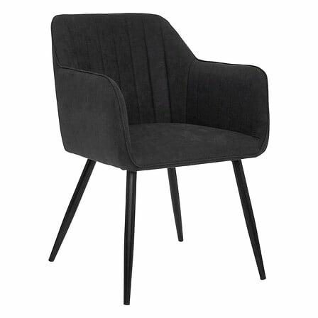 Krzesło Visoca czarne to idealne połączenie elegancji i wygody, które doskonale wzbogaci każde wnętrze. Miękka tkanina oraz pikowane w pasy oparcie zapewniają komfort podczas długich posiedzeń, co sprawia, że krzesło świetnie nadaje się zarówno do jadalni, jak i do salonu. Dodatkowo, model wyposażony jest w podłokietniki, które podnoszą ergonomię użytkowania.