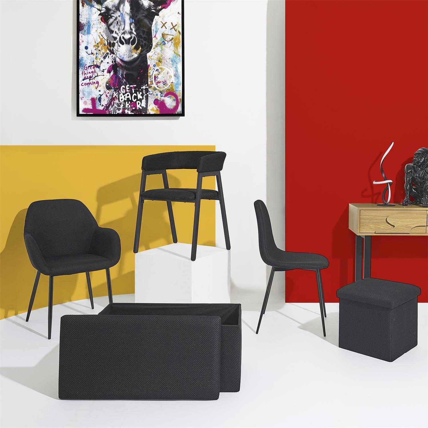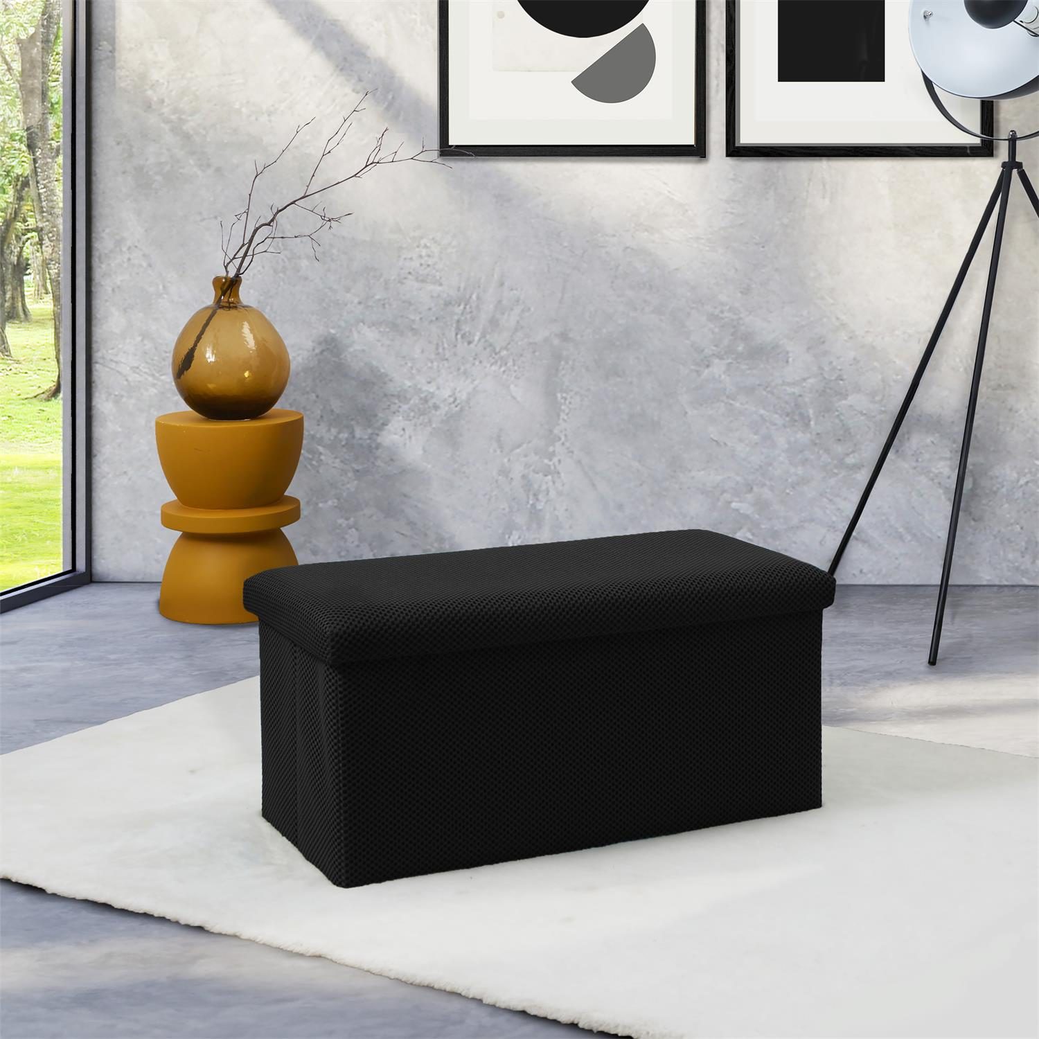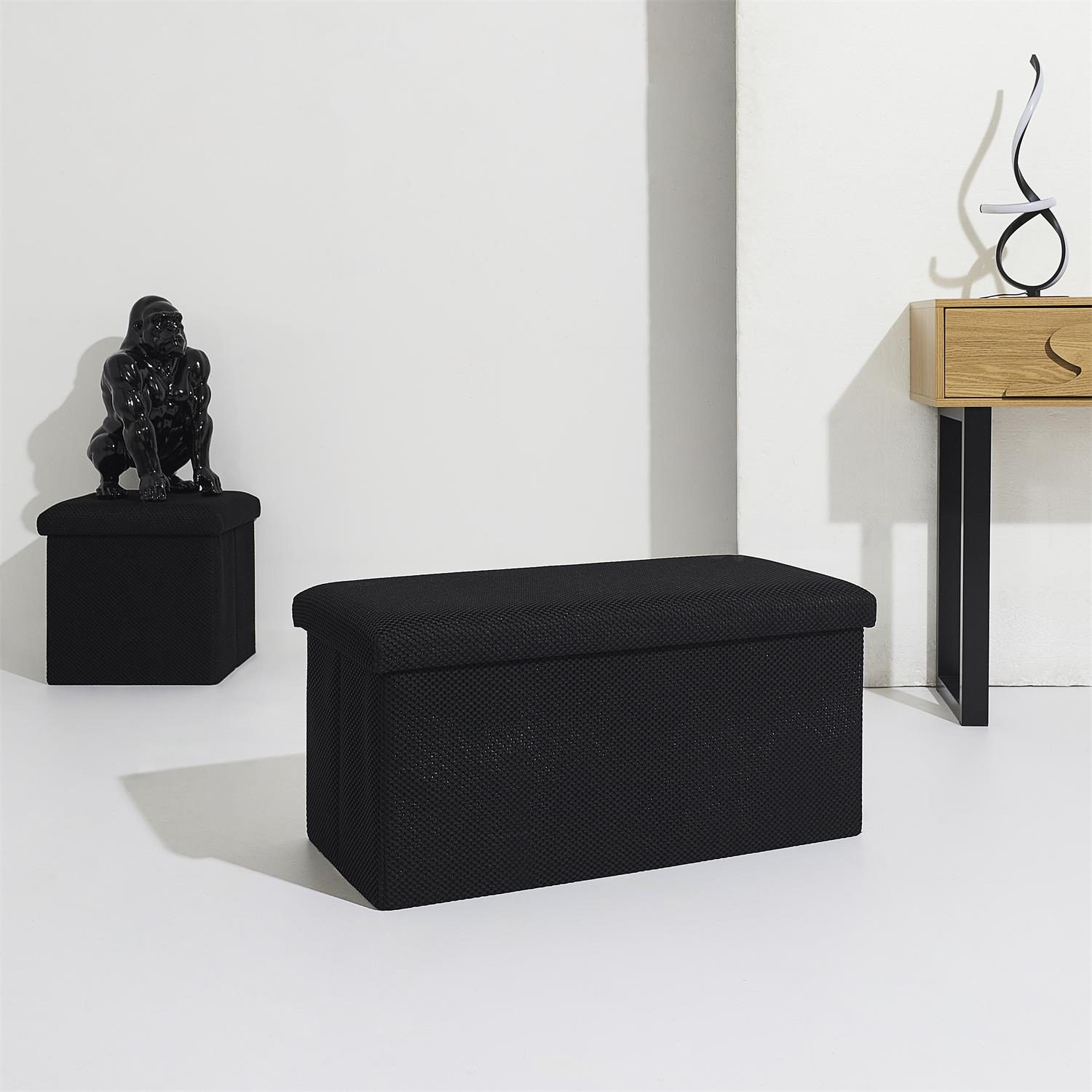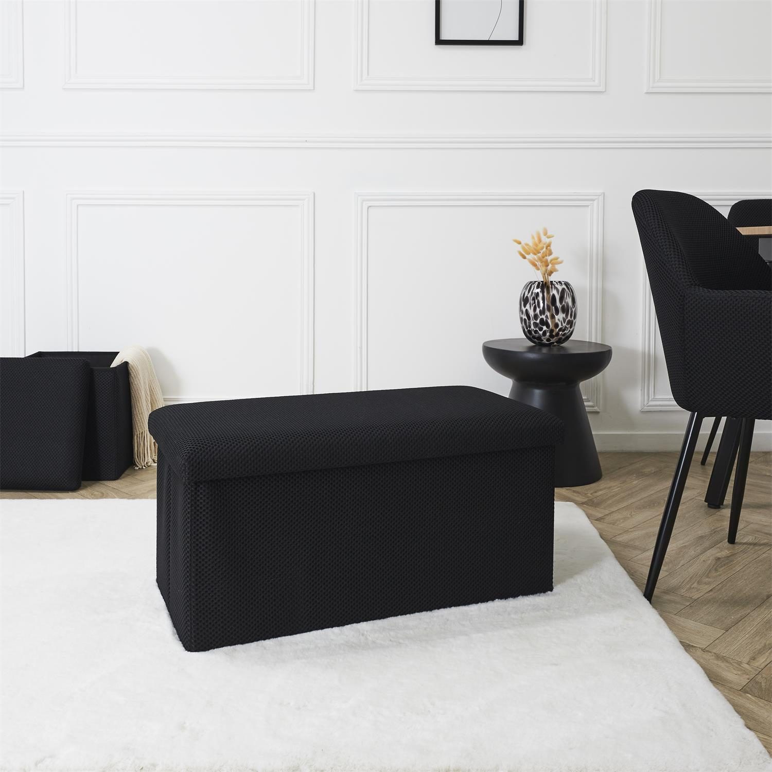 Składana pufa ze schowkiem to must have każdego mieszkania studenta lub osób, które potrzebują dodatkowego siedziska oraz miejsca do przechowywania. Pufa wykonana ze stelaża z wytrzymałej płyty MDF, która gwarantuje maksymalne dopuszczalne obciążenie mebla aż do 110kg. Pufę można złożyć gdy jej nie używamy. Po rozłożeniu natomiast daje nam sporo miejsca do przechowywania zarówno mniejszych rzeczy jak i sporych takich jak koce, buty lub książki. Pufa ozdobiona została ciekawą trójwymiarową tkaniną. Tkanina 100% poliester.