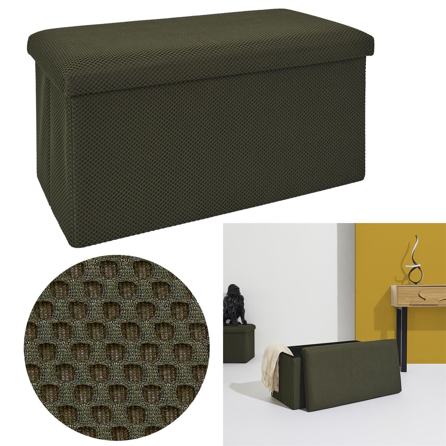 Składana pufa ze schowkiem to must have każdego mieszkania studenta lub osób, które potrzebują dodatkowego siedziska oraz miejsca do przechowywania. Pufa wykonana ze stelaża z wytrzymałej płyty MDF, która gwarantuje maksymalne dopuszczalne obciążenie mebla aż do 110kg. Pufę można złożyć gdy jej nie używamy. Po rozłożeniu natomiast daje nam sporo miejsca do przechowywania zarówno mniejszych rzeczy jak i sporych takich jak koce, buty lub książki. Pufa ozdobiona została ciekawą trójwymiarową tkaniną. Tkanina 100% poliester.