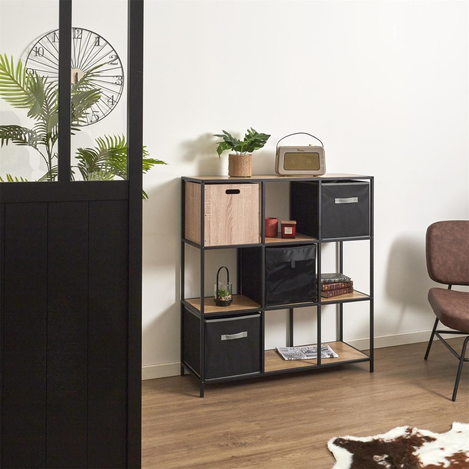 Regał Loka IX wyróżnia się nowoczesnym designem, który idealnie komponuje się z różnymi aranżacjami wnętrz. Czarne metalowe elementy w połączeniu z imitacją dębu nadają regałowi eleganckiego i designerskiego charakteru. To nie tylko mebel do przechowywania, ale także ozdoba każdego pomieszczenia. Wyobraź sobie, jak pięknie będzie prezentować się w Twoim salonie, sypialni czy biurze!