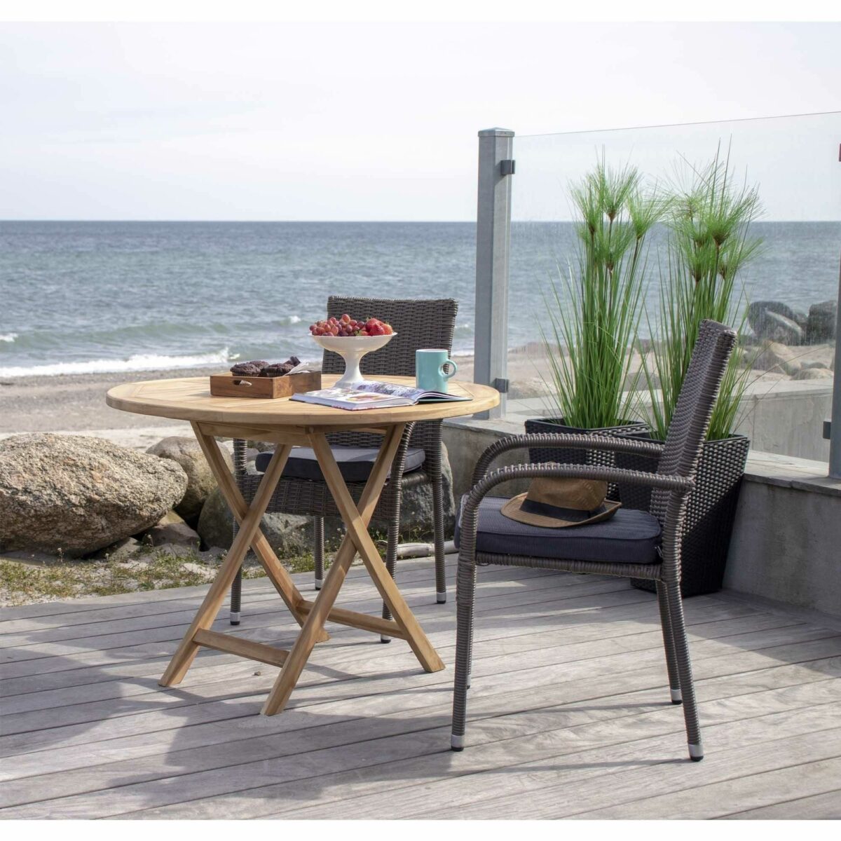 Stół Toledo został wykonany z solidnego drewna tekowego, co gwarantuje nie tylko wyjątkowy wygląd, ale także trwałość i odporność na warunki atmosferyczne. Dzięki składanej konstrukcji, łatwo dostosujesz rozmiar stołu do swoich potrzeb, co sprawia, że jest to idealne rozwiązanie zarówno do małych, jak i większych przestrzeni.