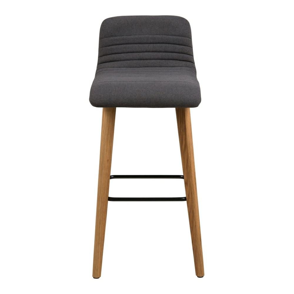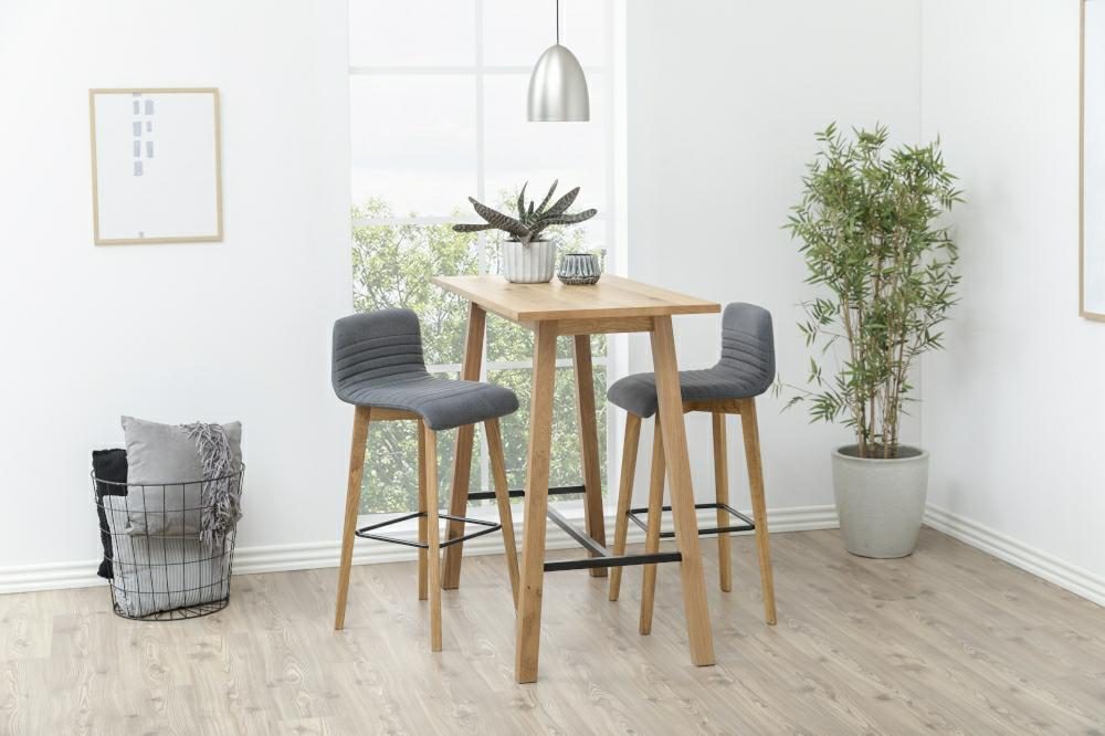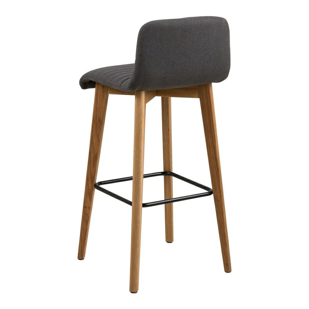 Nowoczesny stołek barowy Arosa jest kolejnym siedziskiem z serii Arosa. Tapicerowane siedzisko stołka zostało ozdobione poziomymi przeszyciami. Tkanina jaka została użyta to Granada kolor Anthracite 08. Podstawą stołka są olejowane dębowe nogi. Nogi dodatkowo zostały zabezpieczone metalowym pomalowanym na czarno podnóżkiem. Max. ilość szt. w kartonie: 2 Waga: 5,9 kg. Wymiary kartonu: 74cm x 62cm x 30cm Wysokość siedziska: 75 cm Szerokość siedziska: 41 cm Głębokość siedziska: 37 cm