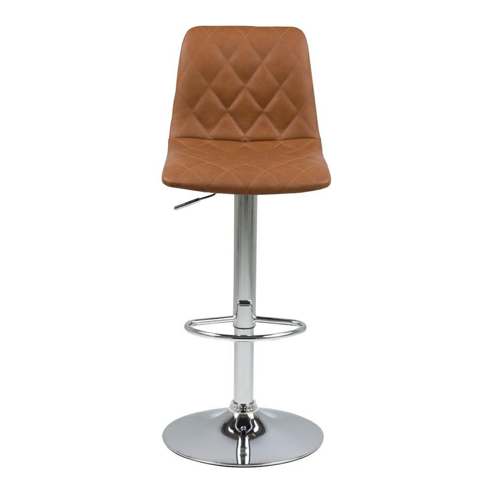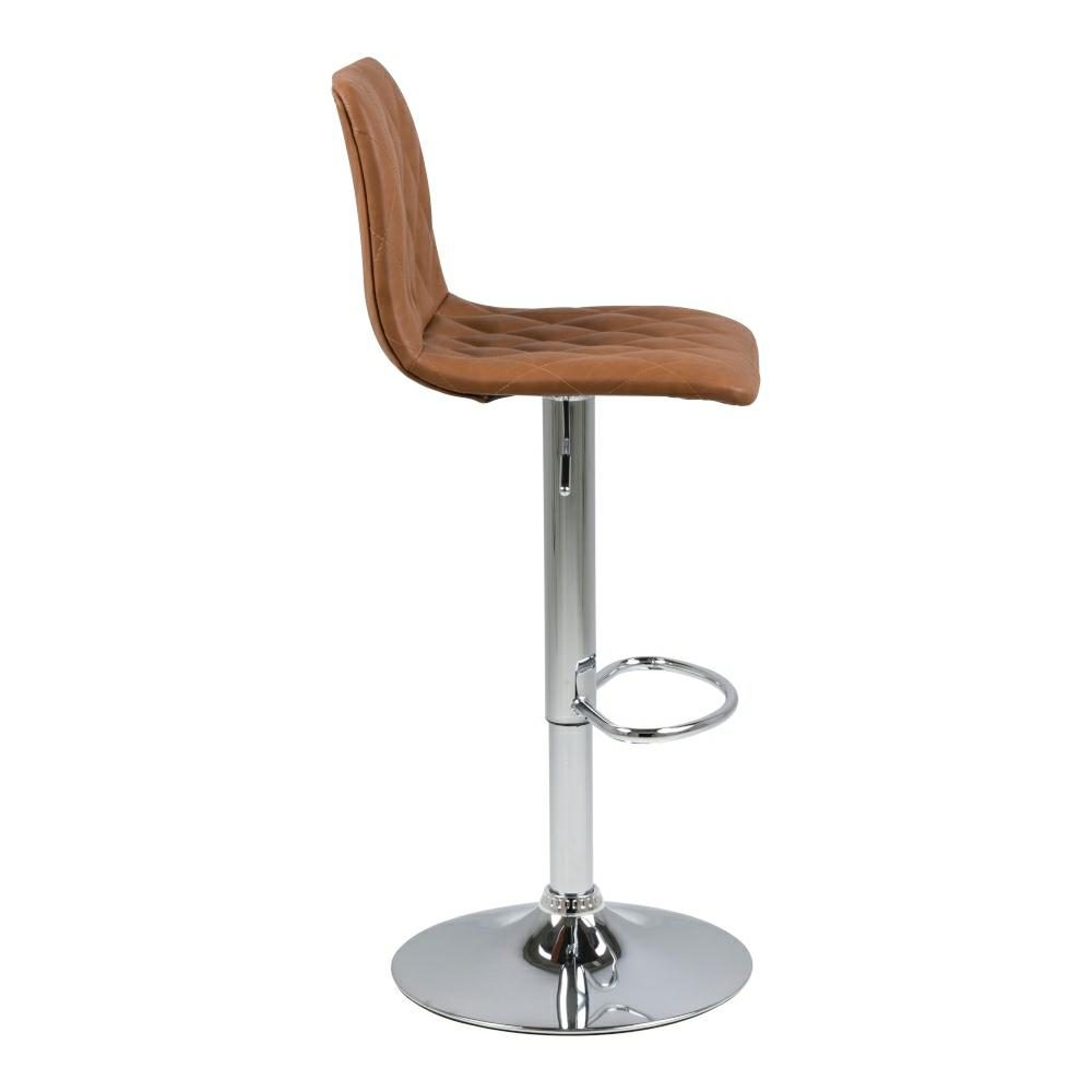 Stołek barowy Emu to tapicerowany eko skórą stołek na wysokiej chromowanej nodze. Siedzisko stołka to miękka gąbka obita pikowaną eko skórą. Siedzisko zostało umieszczone na metalowej chromowanej podstawie. Stołek posiada regulację wysokości. Na nodze stołka został umieszczony dodatkowo podnóżek, który nie tylko ułatwia wejście na stołek, ale również jest podporą dla nóg. Waga: 6,7 kg. Wymiary kartonu: 42,5cm x 25cm x 60cm