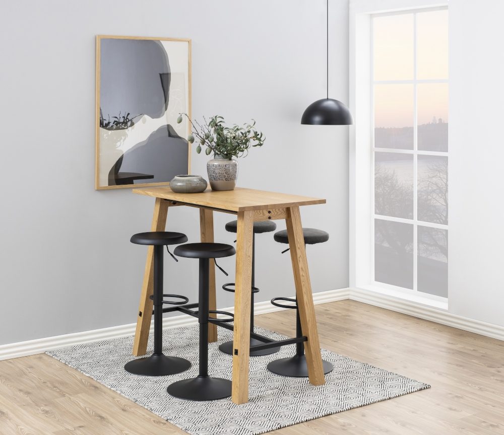 Stołek barowy Finch będzie idealnym siedziskiem przy kuchennej wyspie. Na metalowej, pomalowanej proszkowo na kolor czarny stopie, znajduje się siedzisko, które dla wygody obszyte zostało tkaniną w kolorze ciemnej szarości. Siedzisko wyposażono w mechanizm obrotowy oraz regulujący wysokość umożliwiający dopasowanie do postury użytkownika. Komfort z korzystania ze stołka barowego Finch dopełnia umiejscowiony na konstrukcji podstawy elegancki podnóżek. Maksymalne obciążenie stołka wynosi 120 kg.Waga: 5,7 kg. Wymiary kartonu: 45cm x 38cm x 43cmminimalna wysokość stołka 62cm, maksymalna wysokość: 82cmWysokość siedziska: 82 cmSzerokość siedziska: 33 cmGłęboko siedziska: 33 cm