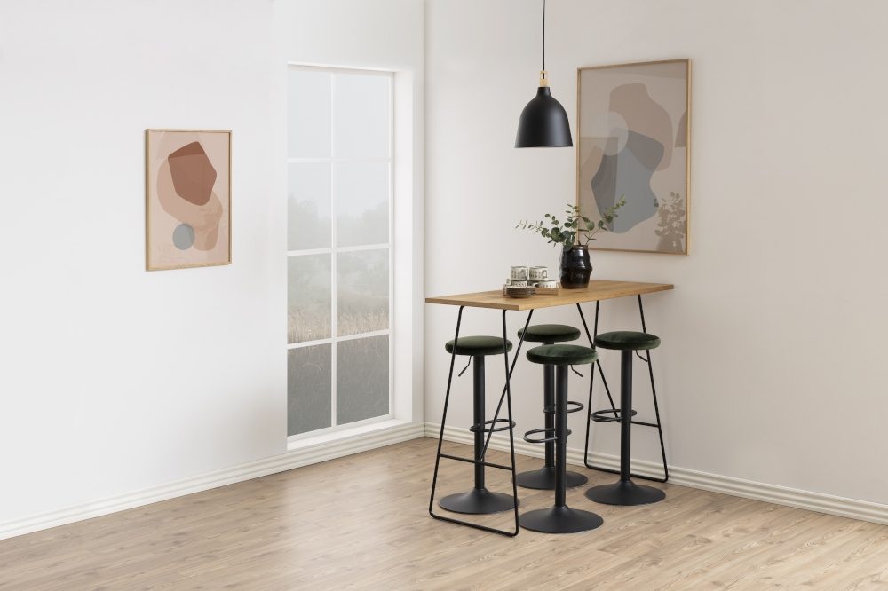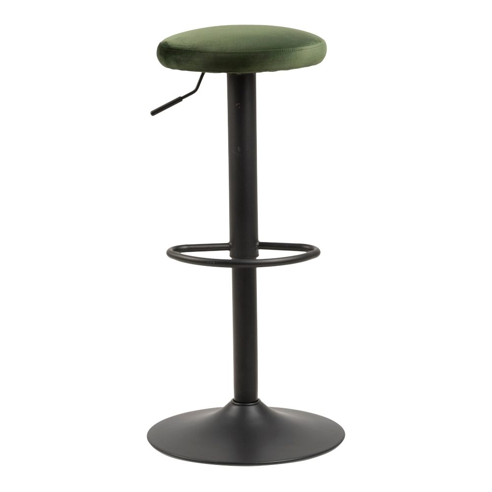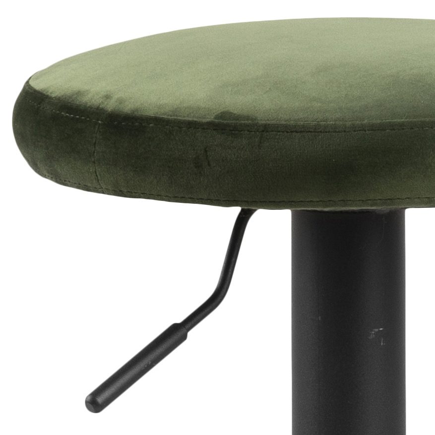 Stołek barowy Finch będzie idealnym siedziskiem przy kuchennej wyspie. Na metalowej, pomalowanej proszkowo na kolor czarny stopie, znajduje się siedzisko, które dla wygody obszyte zostało tkaniną VIC fabric forest zielony 68AC. Siedzisko wyposażono w mechanizm obrotowy oraz regulujący wysokość umożliwiający dopasowanie do postury użytkownika. Komfort z korzystania ze stołka barowego Finch dopełnia umiejscowiony na konstrukcji podstawy elegancki podnóżek. Maksymalne obciążenie stołka wynosi 120 kgMinimalna wysokość stołka 62cm, maksymalna wysokość: 82cm. Waga: 5,7 kg. Wymiary kartonu: 45cm x 38cm x 43cmWysokość siedziska: 82 cmSzerokość siedziska: 33 cmGłęboko siedziska: 33 cm