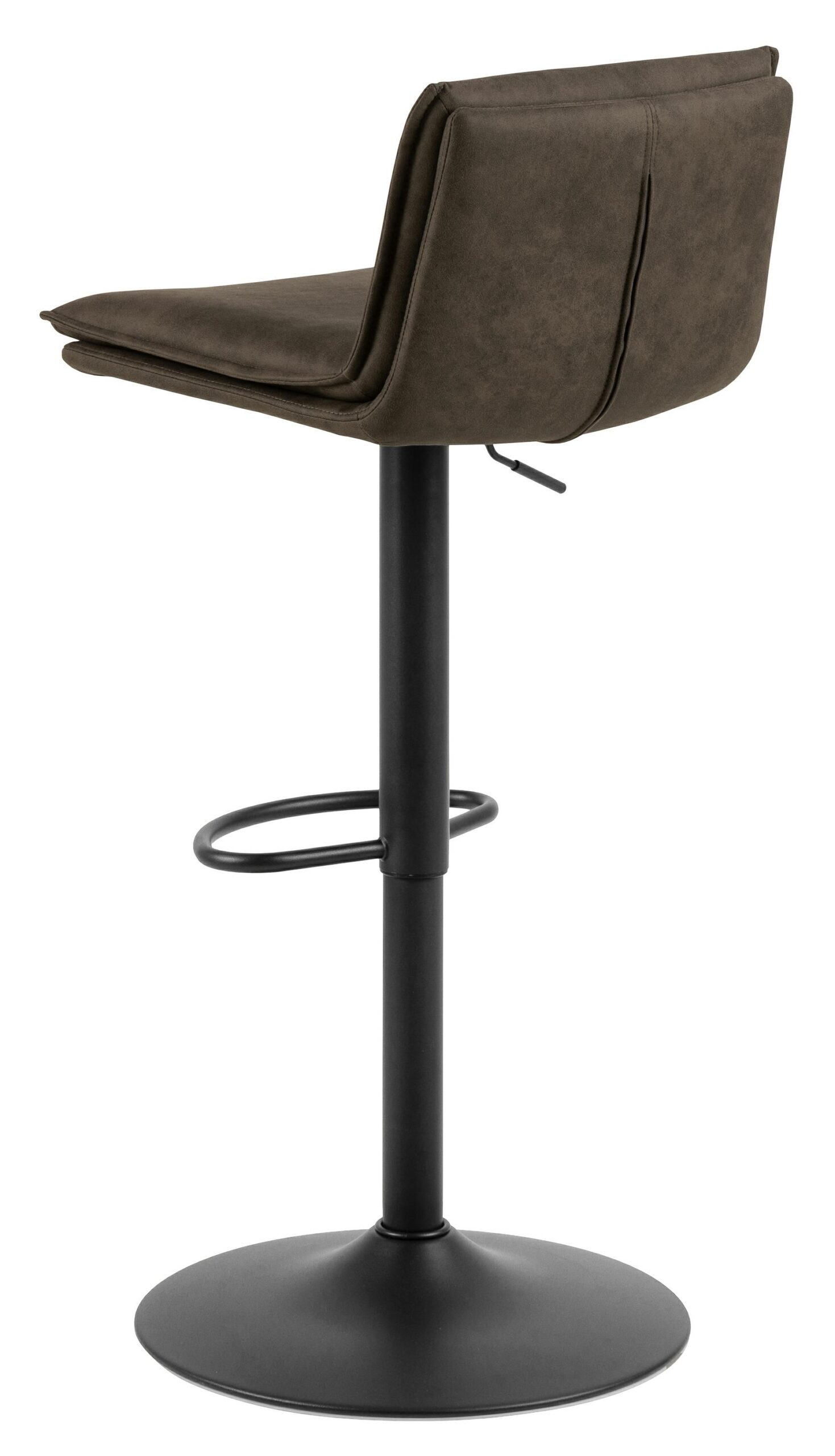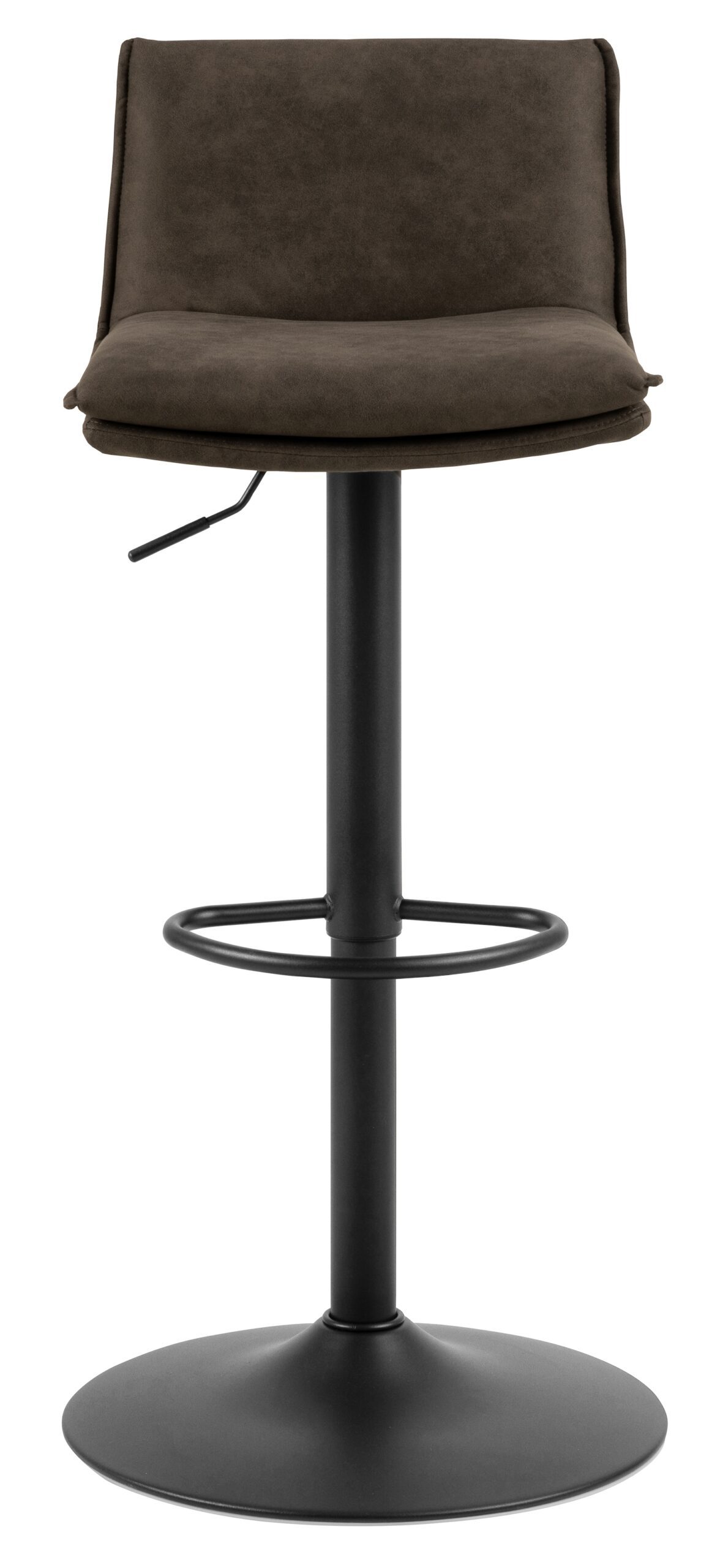 Stołek barowy Flynn posiada siedzisko i oparcie wypełnione pianką poliuretanową i tapicerowane tkaniną Preston fabric anthracite 96. Jego atutem jest miękka, wygodna poduszka. Podstawę stanowi jedna wysoka, metalowa noga zakończona szerokim dyskiem. Stołek Flynn posiada możliwość regulacji wysokości (68-89cm) oraz obracania. Ilość kartonów: 1 Wymiary kartonów: 57x53x49cm Waga kartonów: 22,7kg Szerokość siedziska: 46cm Głębokość siedziska: 38cm Wysokość oparcia: 22,5cm
