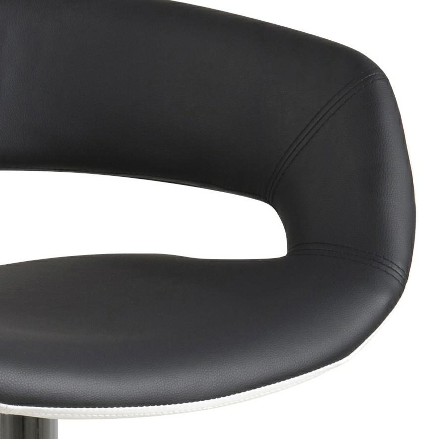 Nowoczesny stołek barowy Grace to doskonałe siedzisko do wyspy kuchennej lub baru. Siedzisko oraz oparcie stołka zostało obite miękką eko skórą w kolorze białym na zewnątrz, oraz czarnym wewnątrz. Ergonomiczny kształt siedziska sprawia, że stołek jest bardzo komfortowy. Stołek ma funkcję obracania się oraz regulacji wysokości. Podstawą stołka jest metalowa chromowana noga. Na nodze został umieszczony dodatkowo podnóżek.Waga: 7,4 kg. Wymiary kartonu: 44cm x 57cm x 55cmWysokość siedziska: 80 cmSzerokość siedziska: 38 cmGłębokość siedziska: 39 cmWysokość podłokietników: 22,5 cm