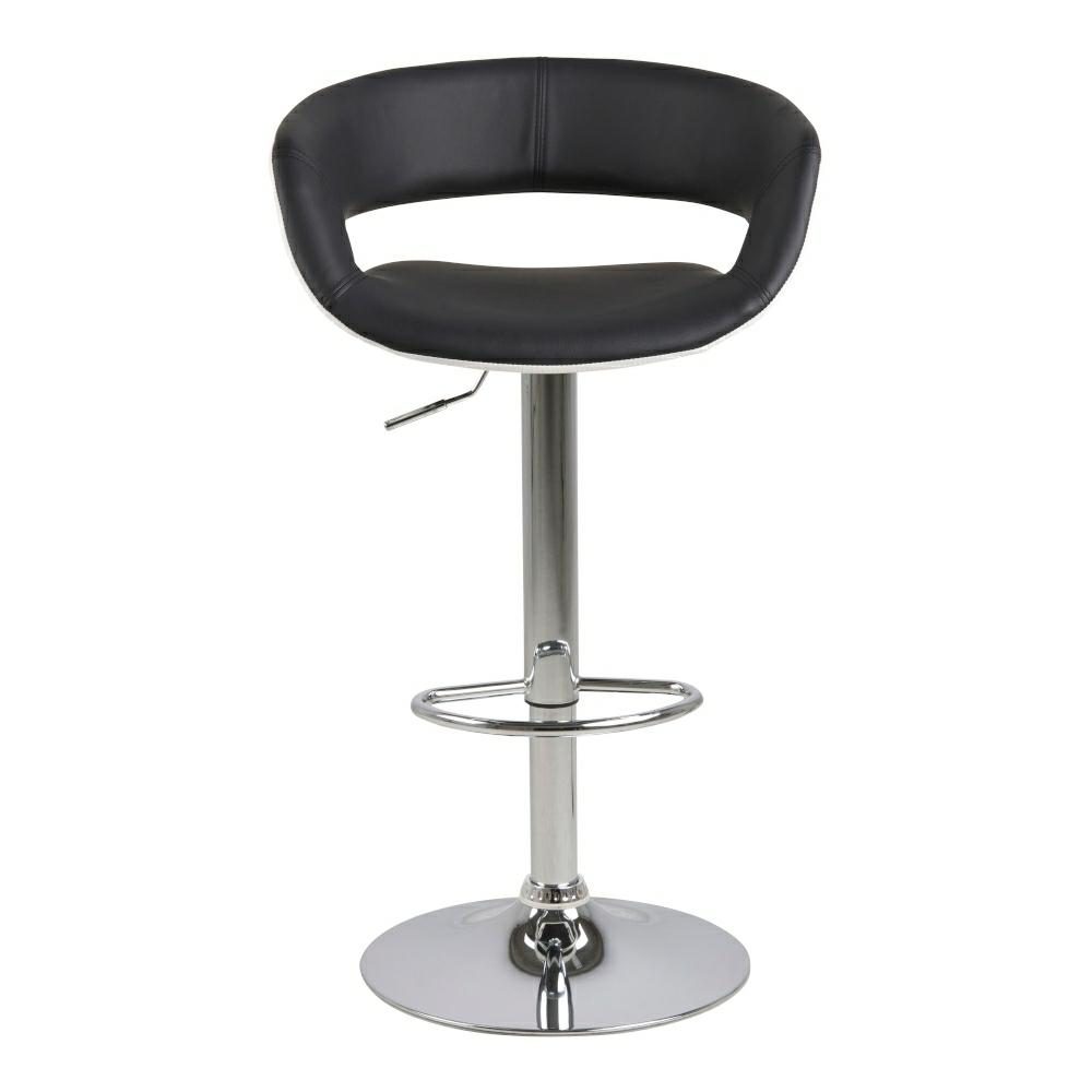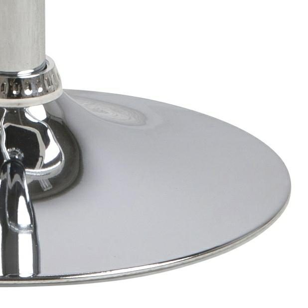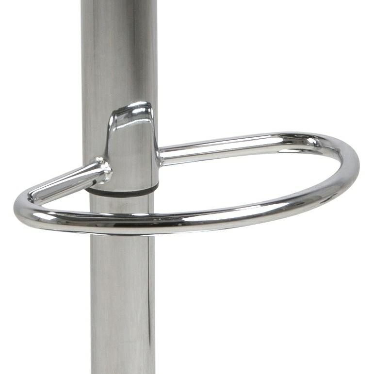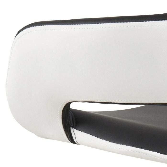 Nowoczesny stołek barowy Grace to doskonałe siedzisko do wyspy kuchennej lub baru. Siedzisko oraz oparcie stołka zostało obite miękką eko skórą w kolorze białym na zewnątrz, oraz czarnym wewnątrz. Ergonomiczny kształt siedziska sprawia, że stołek jest bardzo komfortowy. Stołek ma funkcję obracania się oraz regulacji wysokości. Podstawą stołka jest metalowa chromowana noga. Na nodze został umieszczony dodatkowo podnóżek. Waga: 7,4 kg. Wymiary kartonu: 44cm x 57cm x 55cm Wysokość siedziska: 80 cm Szerokość siedziska: 38 cm Głębokość siedziska: 39 cm Wysokość podłokietników: 22,5 cm