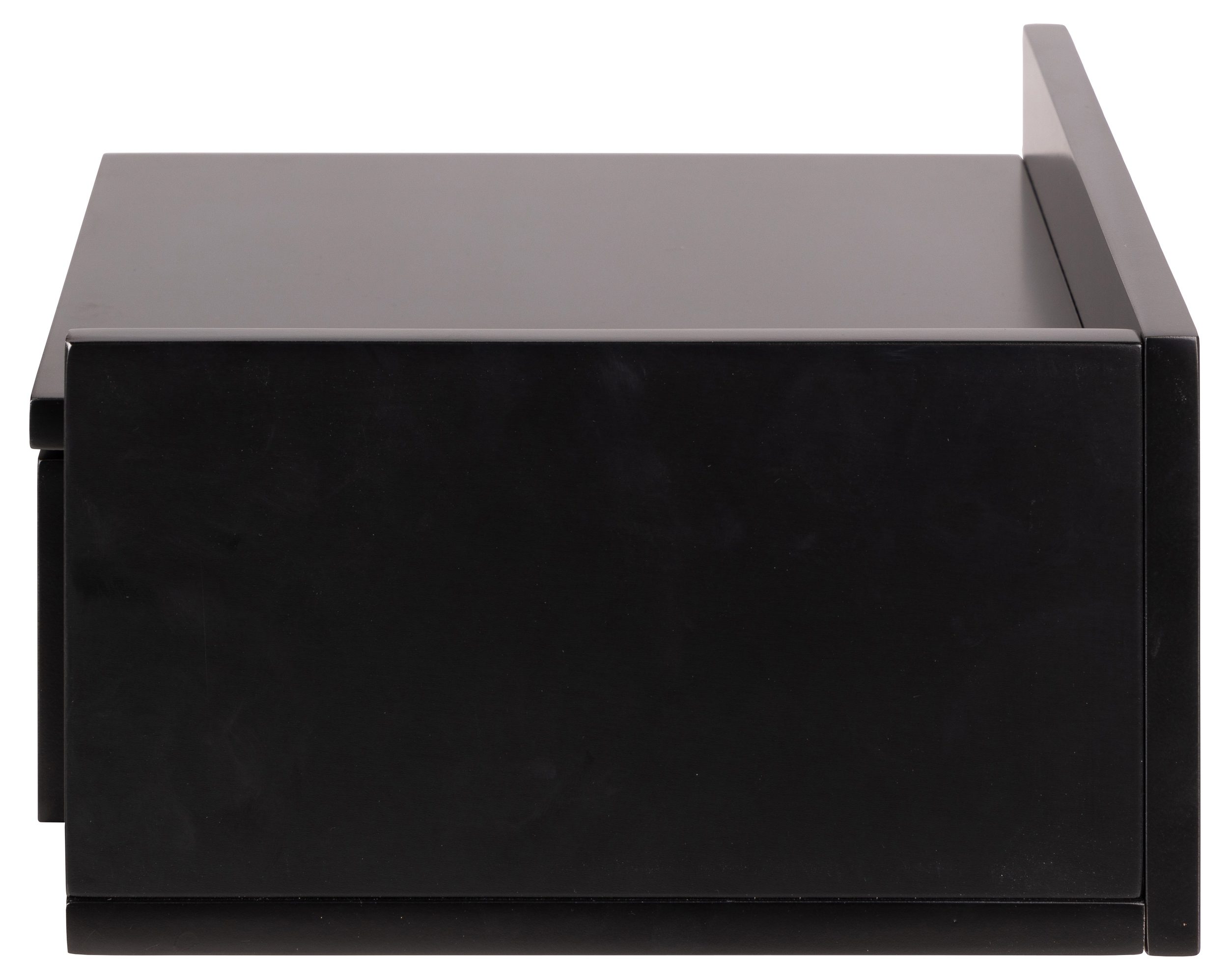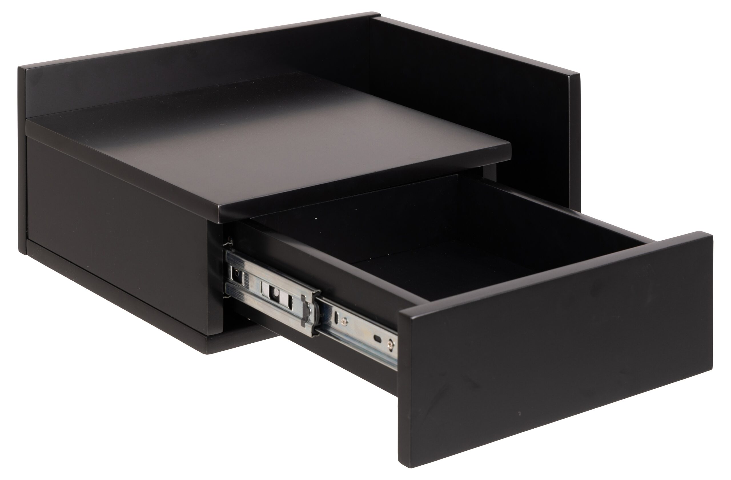 Szafka Ashlan doskonale nada się jako szafka nocna. Jej minimalistyczny kształt i geometria sprawiają że doskonale odnajdzie się w nowoczesnej sypialni, ale również salonie. Szafka wykonana została z płyty MDF. Szafkę Ashlan można postawić koło łóżka, ale również bez mniejszego problemu powiesić na ścianie. Szuflada pomieści drobne przedmioty a przestrzeń między blatami sprawdzi się jako półka na książki czy ulubioną gazetę. Szafka oprócz szuflady posiada także niewielką boczną półkę. Ilość kartonów: 1 Wymiary kartonów: 45,8×34,5x9cm Waga kartonów: 6,1kg