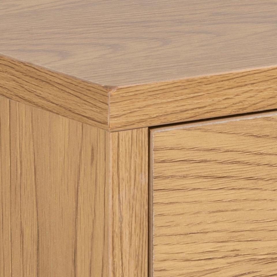 Praktyczny, a jednocześnie atrakcyjny stolik nocny, który doskonale komponuje się z nowoczesnym wystrojem sypialni. Płynnie wysuwana szuflada jest idealna na niezbędne drobiazgi. Otwarta komora pod spodem jest idealna na książki lub czasopisma. Materiał: MDF + okleiną mitująca dąb Wymaga samdzielnego montażu Wymiary paczki: 55,5×39,5×8,8 cm Waga: 8,7 kg