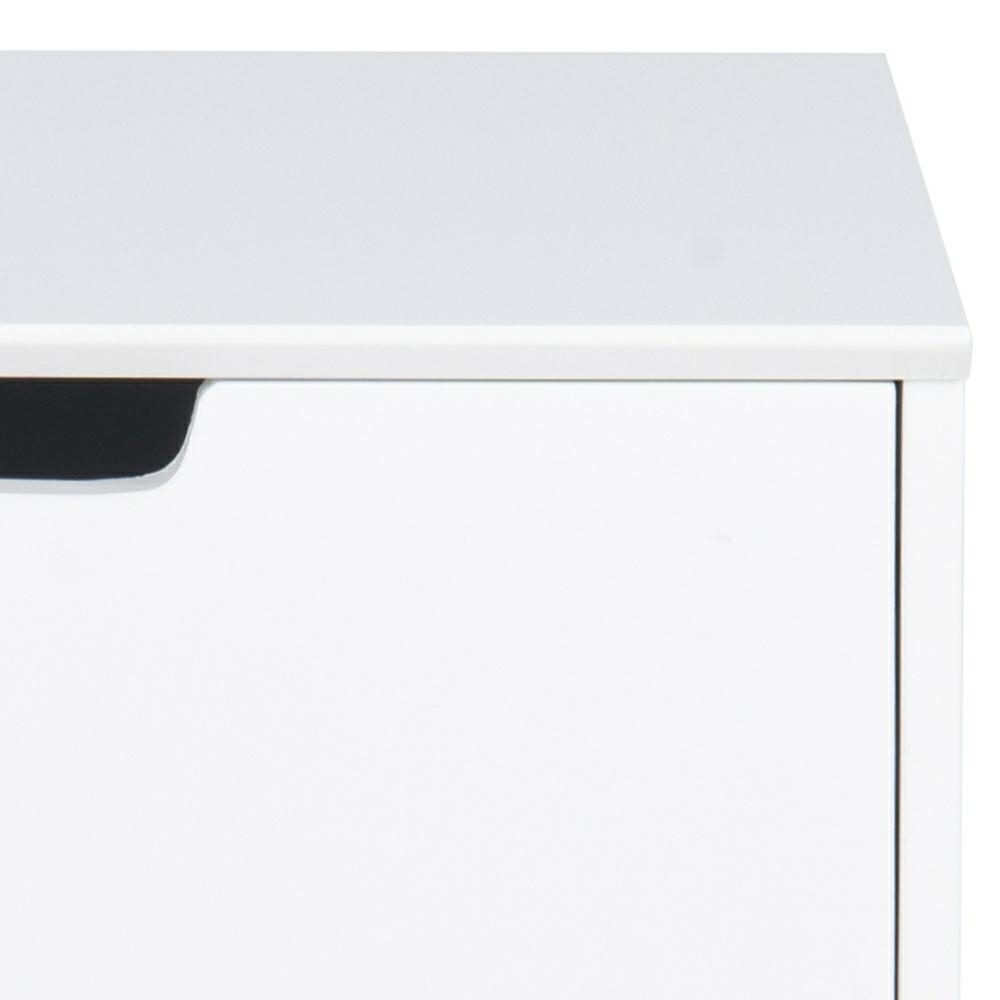 Szafka nocna Mitra utrzymana w stylu skandynawskim wykonana została z płyty MDF w kolorze białym. Podstawę stanowią nogi wykonane z metalu polakierowanego na buiało.. Całość prezentuje się wyjątkowo subtelnie i nowocześnie. Szafka wyposażona jest w jedną bardzo pojemną szufladę. Waga: 6,5 kg. Wymiary kartonu: 52,3cm x 34,2cm x 10,2cm