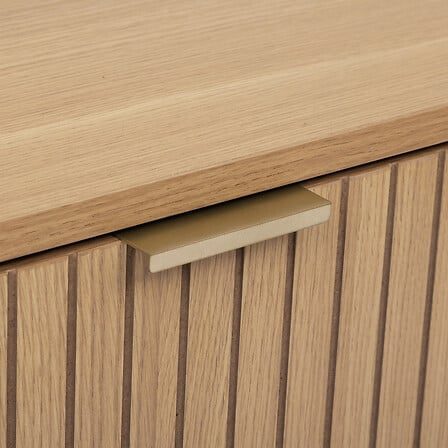 Szafka Tasso to połączenie wytrzymałej płyty MDF w matowej okleinie imitującej drewno oraz metalowej, malowanej proszkowo podstawy. Stolik o kwadratowym blacie wyposażony został w dwie szuflady z metalowymi uchwytami. Wymaga montażu. Max. obciążenie stolika 40kg. Złota podstawa i naturalny odcień korpusu ciekawie ze sobą kontrastują.Fronty szuflad ozdobione lamelami dodają meblowi uroku. Szuflady na szynach kulkowych wyposażone są w cichy domyk.Wymiary: Dł. 40 x Szer. 40 x Wys. 52,5 cmWymiary wewnętrzne szuflady (cm): Dł. 32,3 x Szer. 29 x Wys. 13 cmWaga: 11,5 kgMateriał dolnej półki: Płyta wiórowaObecność szuflad: TakMateriał górnej półki: Płyta wiórowaMateriał okuć: Cynk, żeliwo, bambusMateriał nóg: StalMateriał panelu tylnego: MDF (Płyta pilśniowa)Materiał szuflady: MDF (Płyta pilśniowa), Płyta wiórowaMateriał konstrukcji pionowej: Płyta wiórowaMaksymalne obciążenie: 20 kgLiczba szuflad: 2