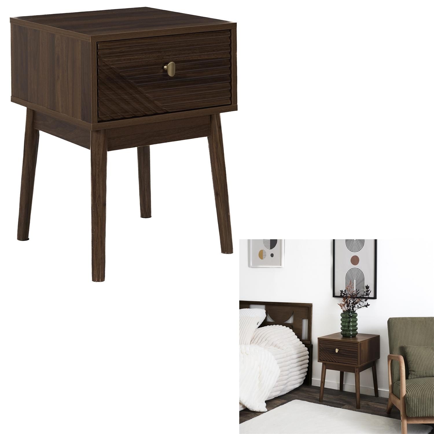 Materiał: korpus płyt MDF, nogi drewno sosnowe, uchwyt metal Wymaga montażu Max. obciążenie 20kg. Szuflada szyna kulkowa, metalowa