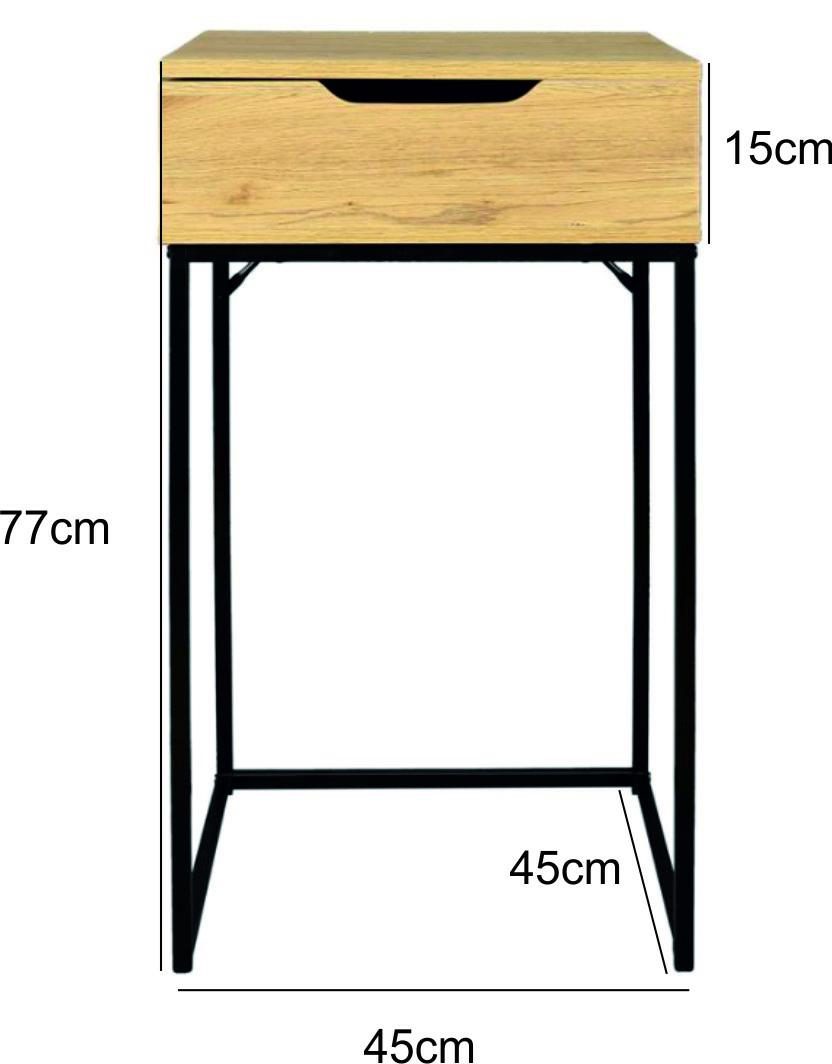 Kompaktowa, designerska i niezwykle praktyczna toaletka Leyla nie zajmuje miejsca i oferuje przestrzeń idealnie dopasowaną do Twoich zabiegów kosmetycznych!Stolik jest zaprojektowany, aby w pełni zaspokoić nasze potrzeby. Oferuje nowoczesny design połączony z funkcjonalnością i solidnym wykonaniem. Mebel ma metalową podstawę, która odpowiada za stabilność i wytrzymałość całości. Co jest najważniejsze, metalowa malowana proszkowo podstawa ma nieprzypadkowe wymiary. Zaprojektowana w ten sposób sprawia, że można pod nią przechować stołek czy puf, będącymi częstymi dodatkami do toaletek. Korpus toaletki został wykonany z płyty, oklejonej mitacą drewna dąbu, aby zachować spójność kolorystyczną z podstawą. Ciekawa szafka nocna otwierana od góry z lusterkiem posiada również 4 duże przegrody, aby łatwiej zachować w niej porządek. Szafka ciekawe komponuje się z meblami z serii Abbott.Wymiary opakowania 8,5 x 50 x 67cm