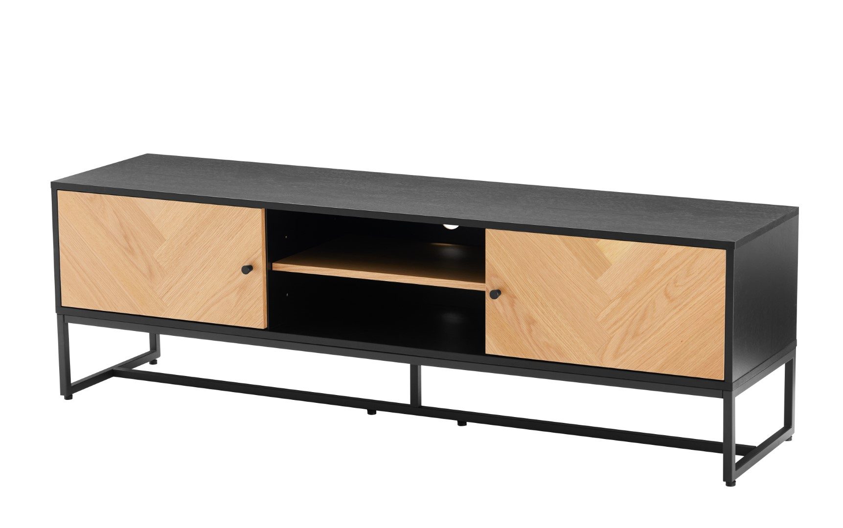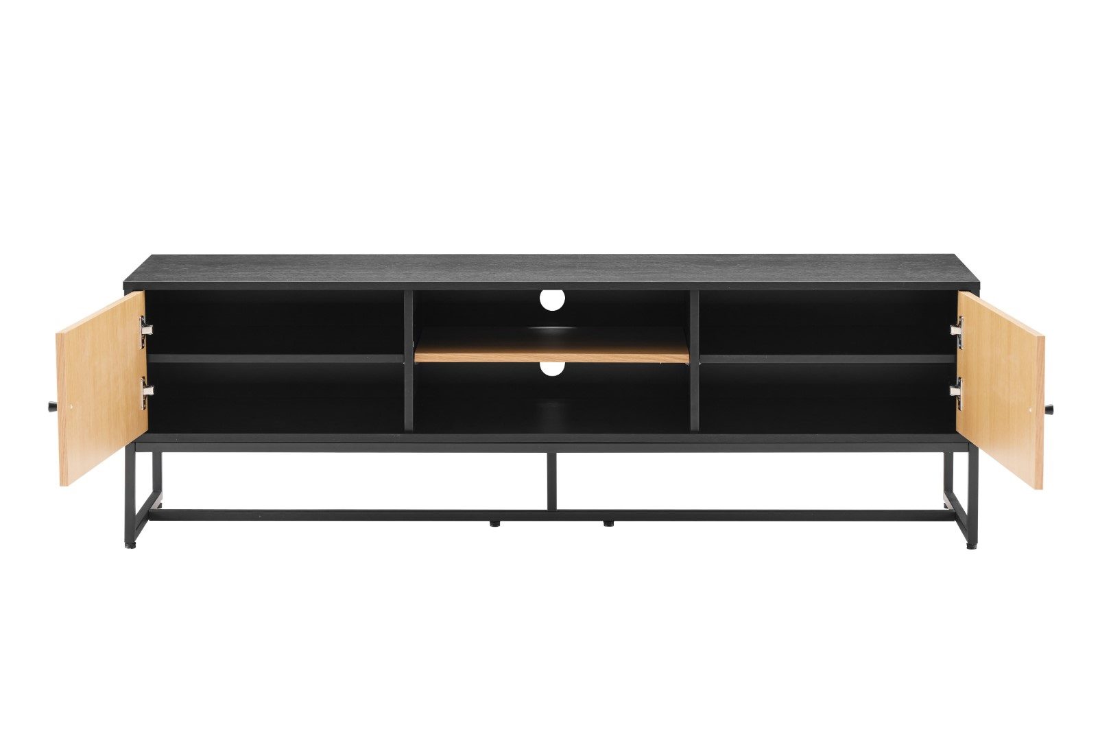 Metalowa rama malowana proszkowo na czarno. Półki i fronty wykonane z MDF z okleiną imitującą dąb Regał: 1 półka i 2 szafki Szafka z funkcją cichego domyku. Wymaga montażu Wymiary kartonu: 171,5x51x13cm