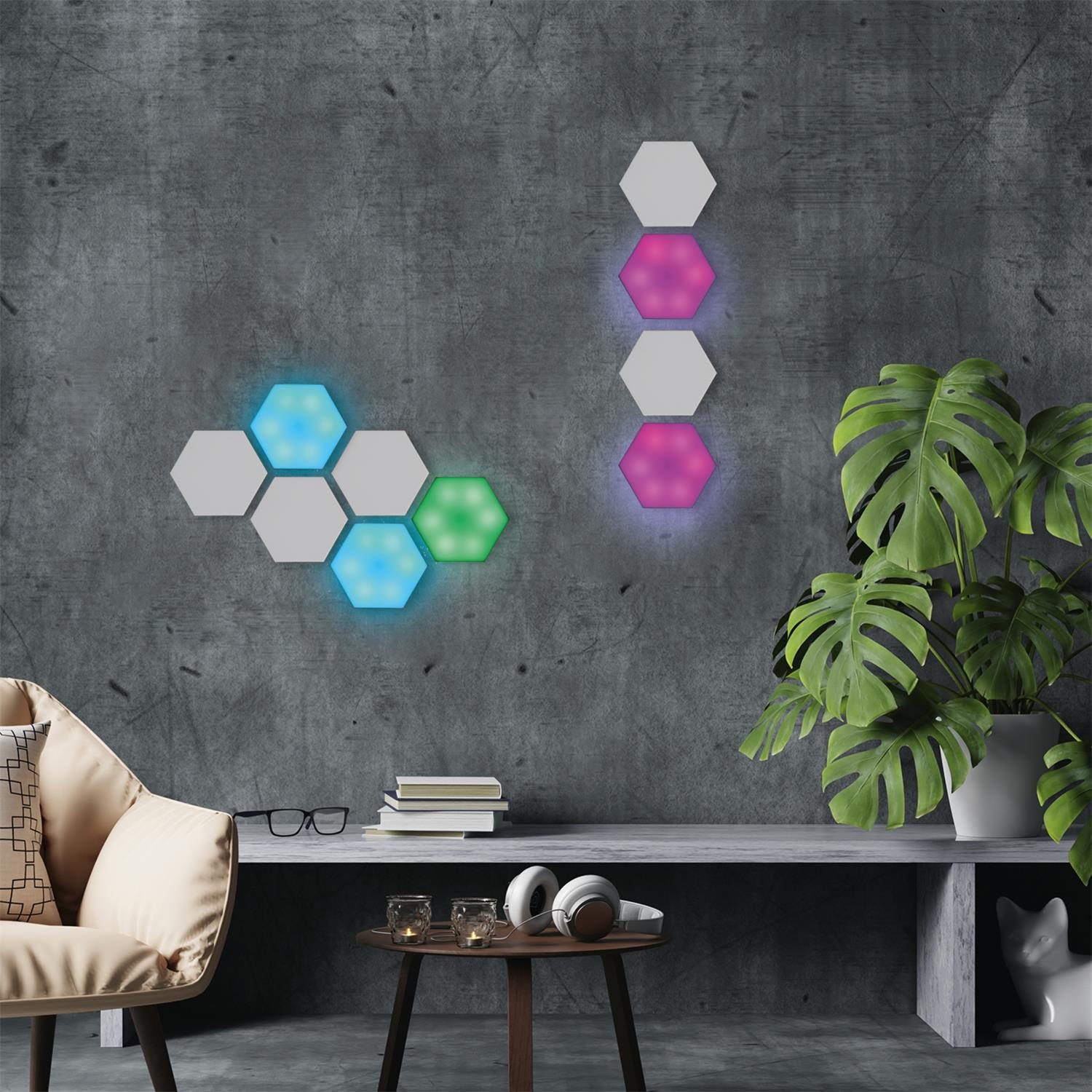 Zestaw dwóch lamp w kształcie hesagonu to wyjątkowa ozdoba, którą możemy powiesić w dowolym miejscu gdyż zasilane są bateriami. Lampki wykonane zostały z tworzywa sztucznego posiadają możliwośc zmiany barwy światła. Możemy modyfikować kolor i wybrać jeden z siedmiu kolorów. Lampka zasilana trzema bateriami (brak w zestawie).