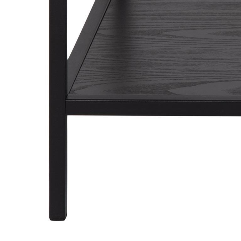 Stolik prostokątny wyposażony został w szeroką półkę z płyty MDF w czarnej okleinie, co pozwala na przechowywanie różnych drobiazgów czy dekoracji. Nogi stolików zabezpieczone są specjalnymi nakładkami, chroniącymi podłogę przed zarysowaniami. Możesz ustawić je razem, tworząc ciekawy zestaw, bądź używać osobno, dostosowując je do swoich potrzeb.
